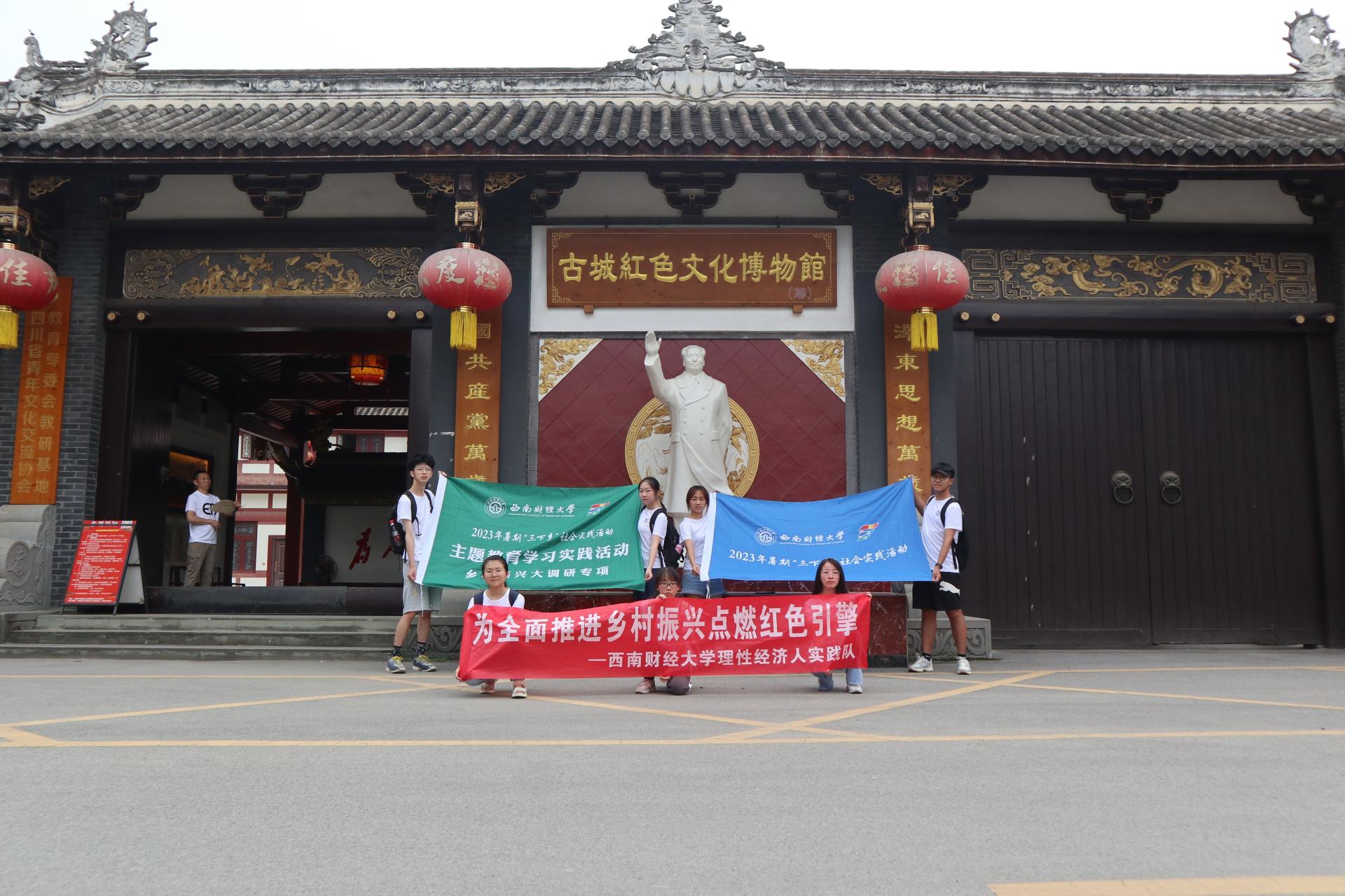 “理性經濟人”實踐隊前往成都市郫都區三道堰鎮,深度走訪三道堰古鎮,參觀學習古城紅色文化博物館,進行了為期五天的社會調研活動。在古城紅色文化博物館,實踐隊跟隨一件件展品回顧了中國共產黨百年奮斗之路的艱辛;就融媒體背景下紅色文化傳播的新態勢及如何推動“紅色傳承”相關問題采訪了前來參觀的游客;在三道堰古鎮進行實地走訪,探究三道堰鎮文旅結合的發展現狀,考察了三道堰古城景區,參觀了位于古城村的糧食經濟復合萬畝示范田,深入探索三道堰古鎮可持續發展之路。