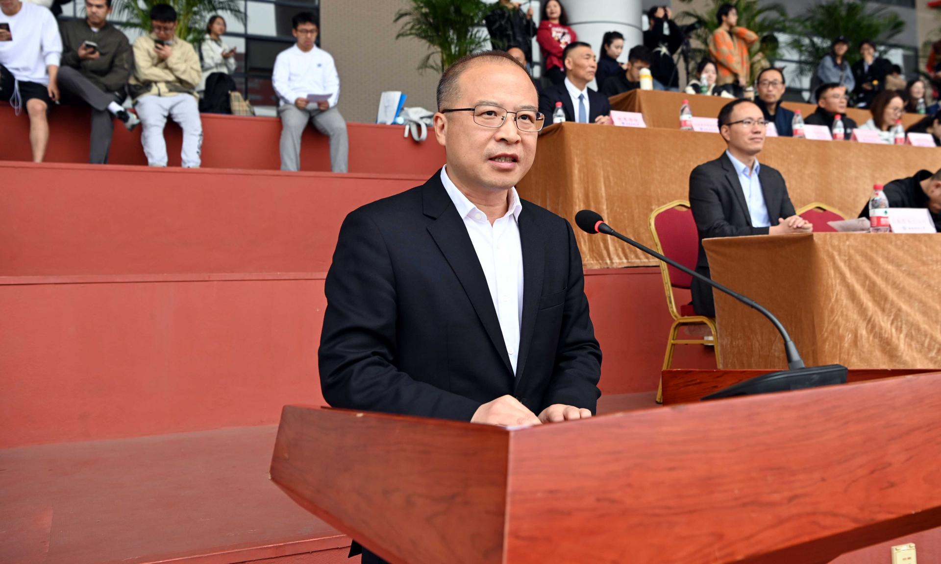 26日8時30分,運動會在晨曦運動場舉行。趙德武宣布運動會開幕,李永強致開幕辭。李永強指出,體育是社會發(fā)展和人類進步的重要標志,承載著國家強盛和民族振興的夢想;體育也是全面落實立德樹人根本任務的基礎性工程,在“五育并舉”中前承德智、后接美勞,是承前啟后的關鍵一環(huán)。學校高度重視體育工作和學生健康成長,把體育當作培養(yǎng)卓越人才的沃土,堅持“健康體育、快樂體育、終身體育”理念,著力構建“1+3體育教學模式”,形成了“一校多品、一院一品、一社一品”體育教育新格局,實現(xiàn)了師生“育體”和學校“育人”的有機結合。李志生主持開幕式。
