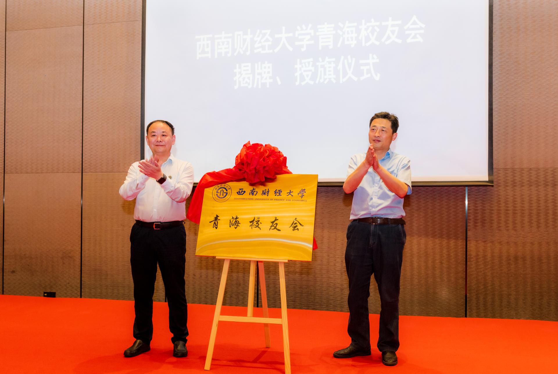 會上宣讀了《關于成立西南財經大學青海校友會的批復》和青海校友會第一屆理事會成員名單,舉行了青海校友會揭牌和授旗儀式,并為青海校友會第一屆理事會成員頒發聘書。