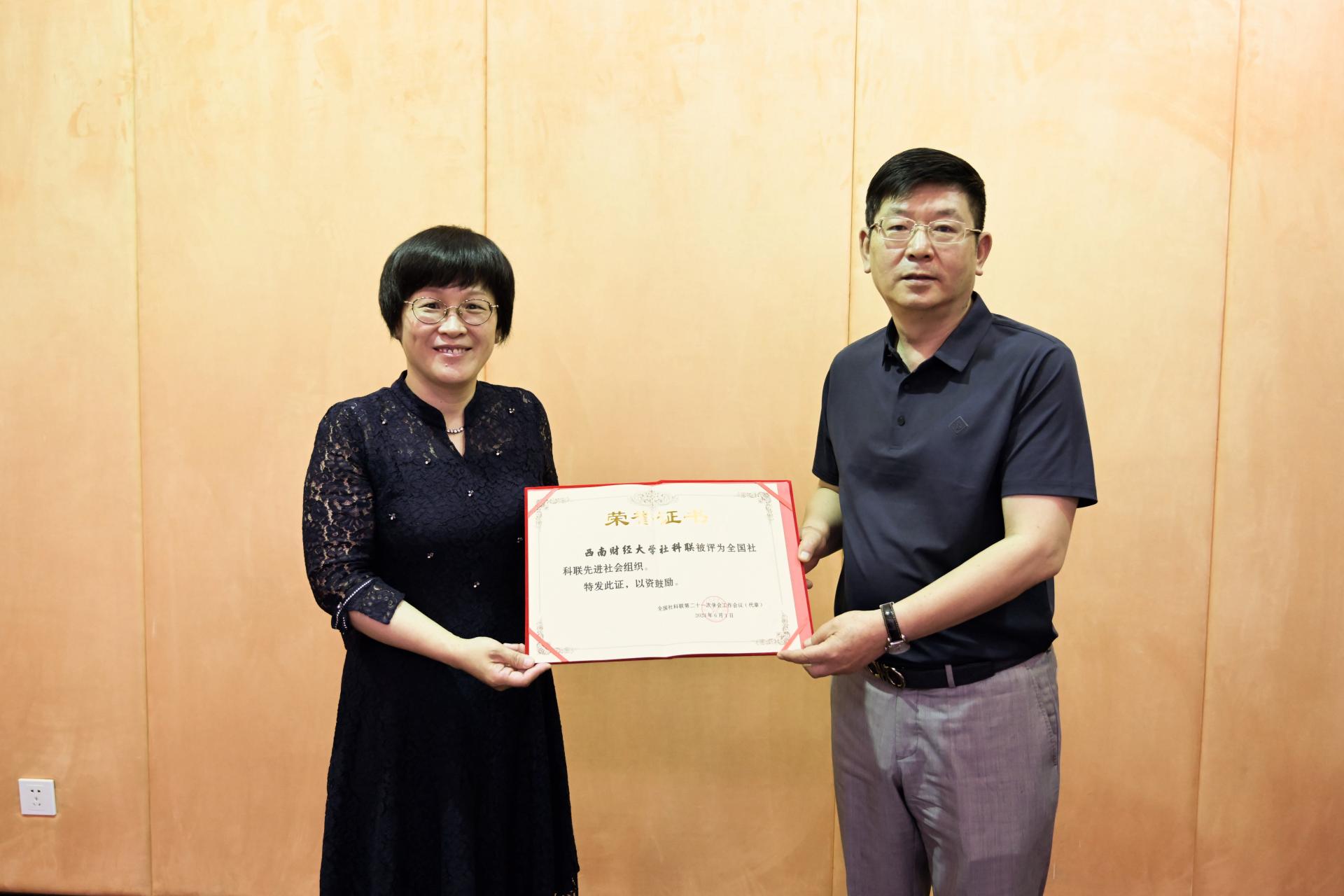 會上,于麗代表省社科聯(lián)為我校頒發(fā)了全國社科聯(lián)先進(jìn)社會組織榮譽(yù)證書。該榮譽(yù)由全國社科聯(lián)第二十一次學(xué)會工作會議評選產(chǎn)生,會議對全國社科聯(lián)先進(jìn)社會組織、創(chuàng)建新型智庫先進(jìn)社會組織、優(yōu)秀社會組織工作者進(jìn)行了表彰。全國共表彰149個先進(jìn)社會組織,其中四川省共5個社會組織獲得表彰,我校是全省唯一獲得表彰的高校。近年來,學(xué)校社科聯(lián)積極參與全省社科發(fā)展規(guī)劃編制,聯(lián)合省社科聯(lián)舉辦各類學(xué)術(shù)會議,搭建全省社科工作高水平交流平臺,組織學(xué)校社科工作者緊緊圍繞國家和四川重大需求,深入開展理論對策研究,為推動黨的創(chuàng)新理論研究闡釋、建構(gòu)中國自主的知識體系、加快推進(jìn)社科強(qiáng)省建設(shè)作出了積極貢獻(xiàn)。