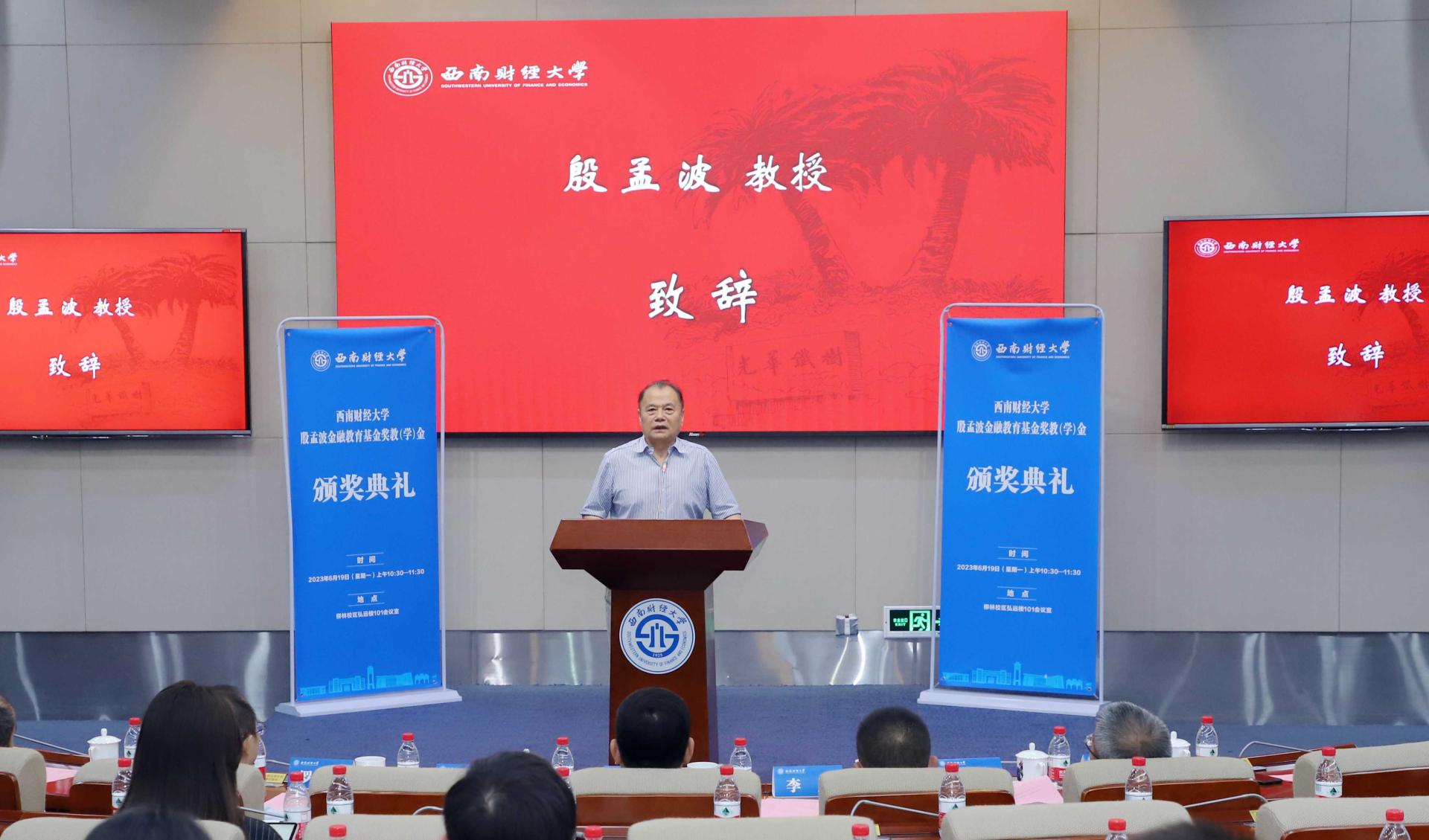 尹慶雙介紹了殷孟波基金會的建立與發展,并代表學校對殷孟波及校友對學校金融學科教育事業的貢獻致以崇高謝意,向獲得本次獎教金的師生致以衷心祝賀。他從加大宣傳力度、建立獲獎師生與殷孟波教授的溝通機制等方面對基金會的未來工作提出了寶貴意見。