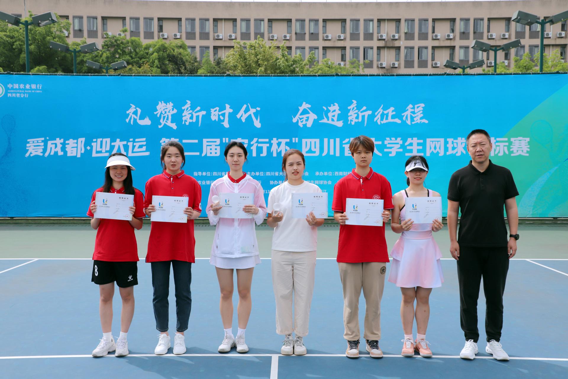 5月13日、14日,由四川省教育廳指導、四川省大學生體育協會主辦、西南財經大學承辦、中國農業銀行四川省分行聯辦的第二屆“農行杯”四川省大學生網球錦標賽在我校柳林校區舉行,全省48支代表隊和700余名運動員、教練員、裁判員參與了比賽。四川省高等院校網球協會主席賴廷謙教授,中國農業銀行四川省分行黨委書記、行長孫景偉,中國農業銀行四川省分行黨委委員、副行長兼成都分行黨委書記、行長王屹,中國農業銀行四川省分行高級專家兼成都分行黨委委員、副行長朱波,四川省大學生網球協會副會長王定宣教授,成都市網球協會副主席賀杰,我校黨委書記趙德武教授,黨委副書記、副校長李永強教授出席開幕式。學校體育學院院長、四川省大學生體育協會會長楊遠波主持開幕式。