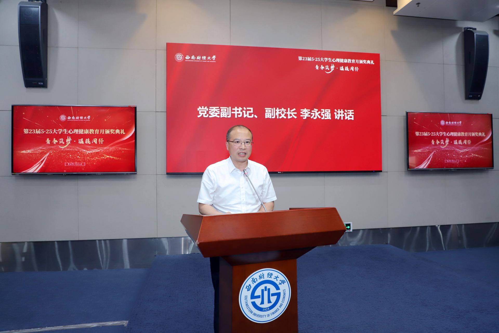 6月6日下午,西南財經大學第23屆“5?25”大學生心理健康教育月頒獎典禮在弘遠樓101會議室舉行。黨委副書記、副校長李永強,學校學生心理健康教育領導小組成員單位負責人,師生代表等200余人參會。