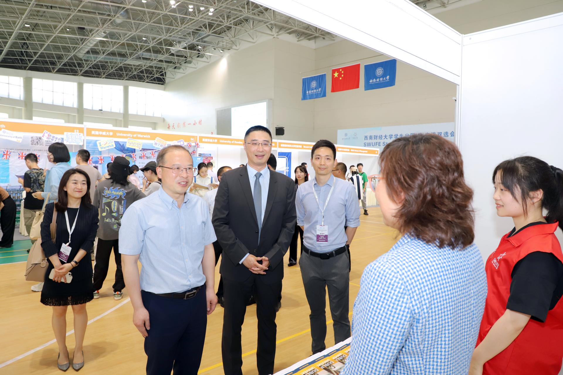 4月18日下午,2023年西南財經大學學生出國(境)交流雙選會在柳林體育館隆重舉行,近1200名學生和200個出國(境)交流項目參加此次展會。學校黨委副書記、副校長李永強出席開幕式。
