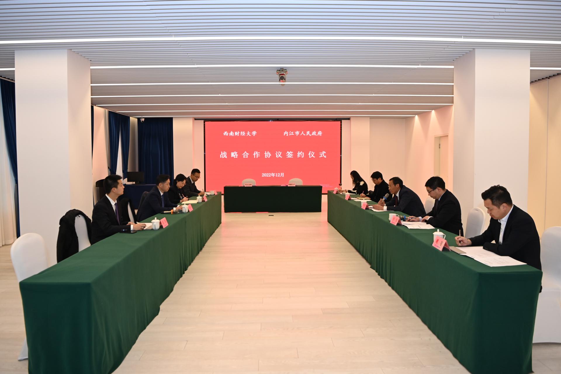 桂富強對陳建軍副市長一行表示熱烈歡迎。他指出,此次戰略合作協議的簽訂,對于雙方更好服務國家戰略、爭創世界一流、推動高質量發展具有重大而深遠的意義。他提出三點合作建議,一是服務國家戰略,共同助力治蜀興川再上新臺階;二是推動科技合作,共同助力建設科技創新平臺;三是加強人才交流,共同助力雙方事業發展戰略。他表示,西南財經大學將認真履行戰略合作協議約定各項條款,推動雙方實現優勢互補、共同發展。