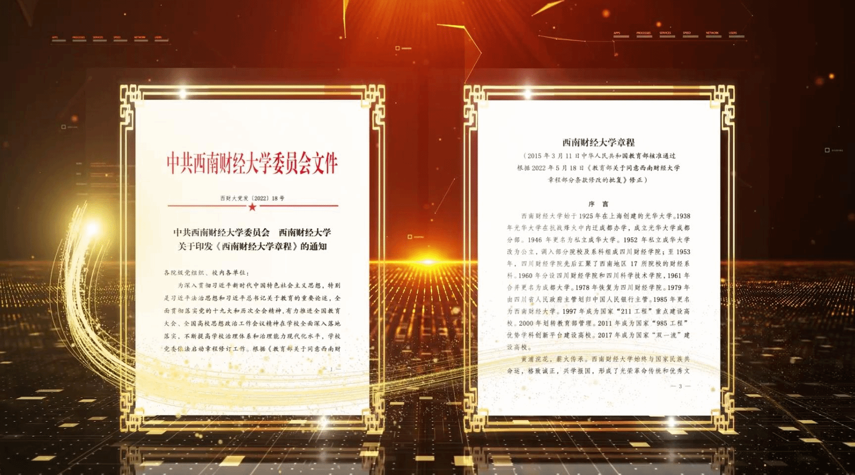 這是黨和國家歷史上極為重要的一年,也是西財人守望相助、勠力同心、團結奮斗展現新氣象新擔當、取得新進步新突破的一年。這一年,我們高擎思想旗幟,以黨的二十大精神引領學校發展。這一年,我們胸懷國之大者,以加快建設“新財經”“雙一流”譜寫奮進新篇。這一年,我們銳意改革創新,以奠基百年西財匯聚磅礴力量。