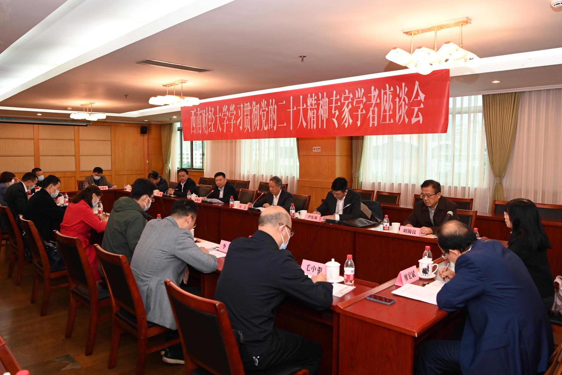 10月29日,學(xué)校黨委在光華樓601會議室召開學(xué)習(xí)貫徹黨的二十大精神專家學(xué)者座談會。黨委書記趙德武教授,黨委副書記、校長卓志教授,黨委副書記馬驍教授,黨委常委、副校長尹慶雙教授出席會議,學(xué)校老中青專家學(xué)者代表,黨委宣傳部、科研處負(fù)責(zé)人及《經(jīng)濟(jì)學(xué)家》《財(cái)經(jīng)科學(xué)》期刊編輯參加會議。