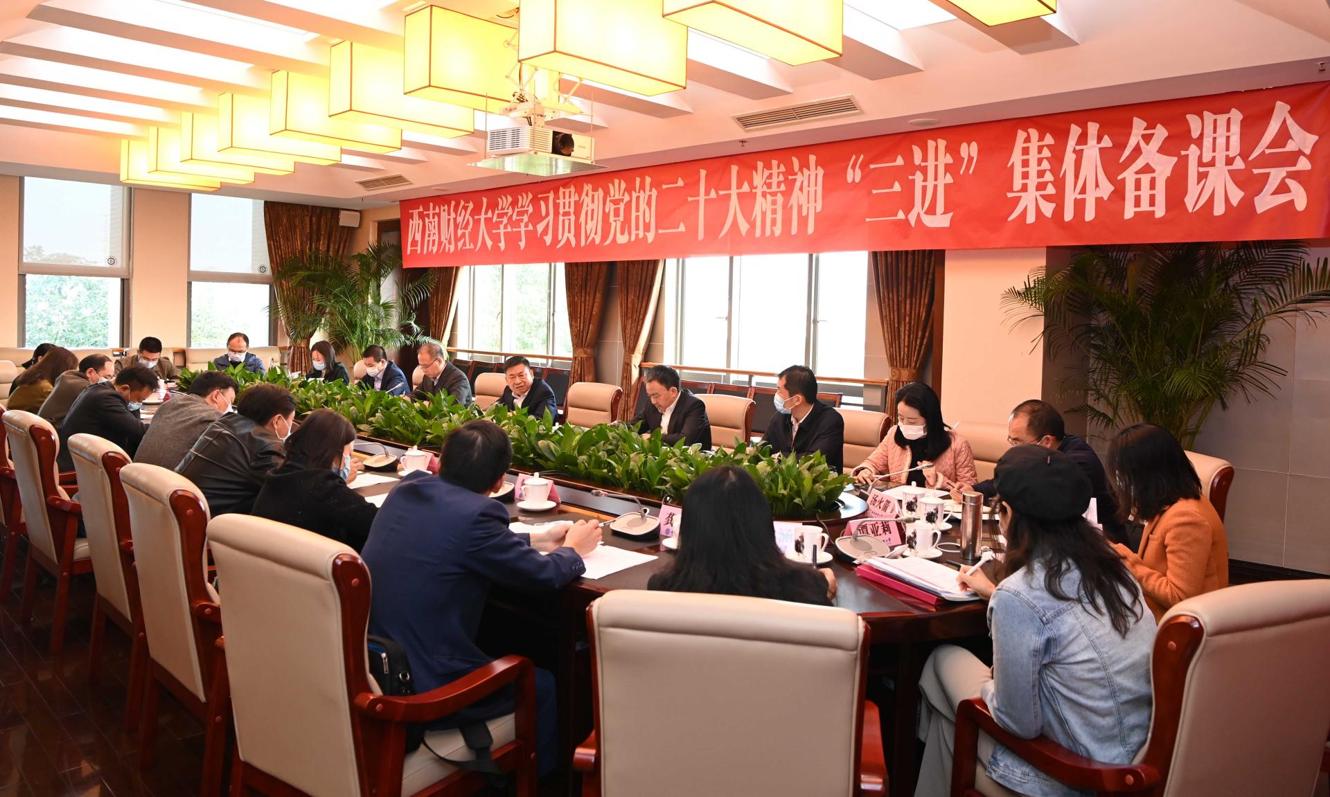 11月16日,學校召開學習貫徹黨的二十大精神“三進”集體備課會。黨委書記、集體備課組組長趙德武出席并講話,強調要充分發揮教師隊伍主力軍、課程教材主陣地、課堂教學主渠道作用,以扎實有力舉措抓好黨的二十大精神進教材進課堂進頭腦,堅定推動黨的二十大決策部署在西南財大落地生根、開花結果。