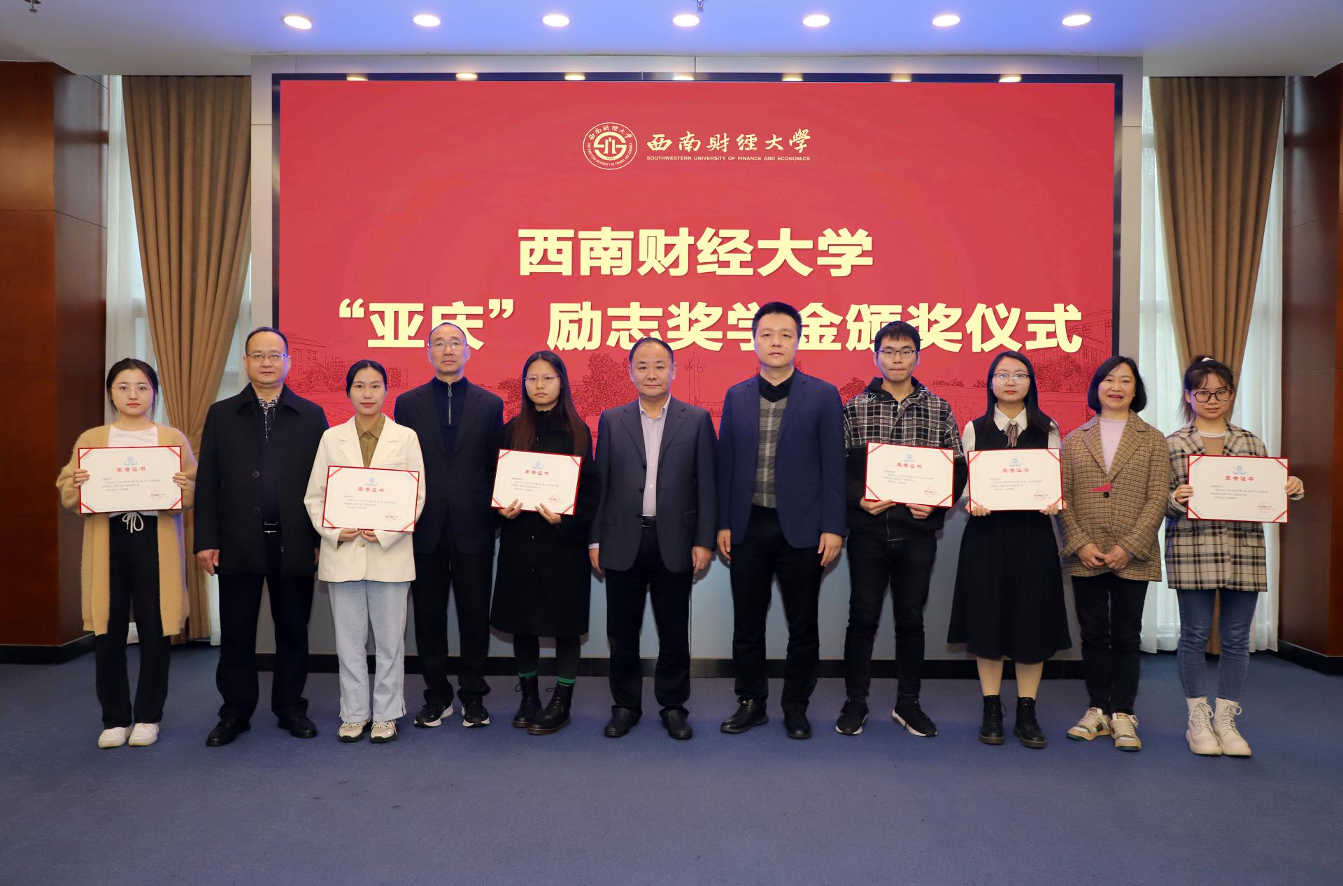 11月17日,2021-2022學年西南財經大學“亞慶”勵志獎學金頒獎儀式在柳林校區弘遠樓109會議室舉行。學校黨委常委、副校長張邦富,1993級校友、鵬華基金管理有限公司副總裁韓亞慶,校友工作辦公室、會計學院、數學學院相關代表及全體獲獎學生參加儀式。