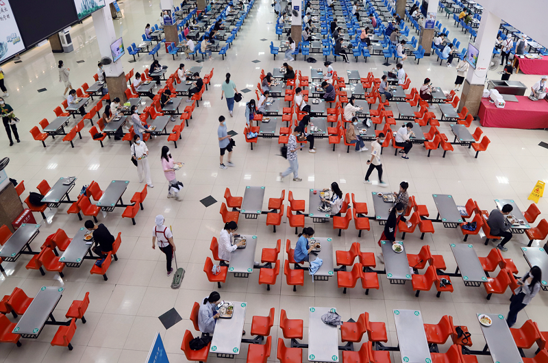 王清同志是一名有著40多年黨齡的老黨員,作為飲食服務(wù)中心負(fù)責(zé)人,他與其他餐飲服務(wù)戰(zhàn)線的黨員同志一道主動住在校內(nèi),他們說,“疫情當(dāng)前,大家都有困難,作為一名共產(chǎn)黨員,現(xiàn)在學(xué)校需要我們,我們就應(yīng)該帶頭留下”。中心副經(jīng)理馬明思同志負(fù)責(zé)物資保障工作,每天聯(lián)系40多家供應(yīng)商,撥打100多通電話,協(xié)調(diào)物資采購、配送事項。9月2日凌晨2點,當(dāng)3萬多斤蔬菜都配送到位時,她才稍微松了一口氣。全體一線員工以黨員為標(biāo)桿,紛紛主動請纓駐守學(xué)校,以便出現(xiàn)突發(fā)緊急情況時能夠正常保供,他們不僅認(rèn)真負(fù)責(zé)做好本職工作,努力讓師生吃得健康、吃得營養(yǎng),還在食堂實行分區(qū)錯峰就餐、延長各時段供餐時間后,主動加入到食堂就餐秩序維護(hù)中,引導(dǎo)師生遵守學(xué)校疫情防控要求,落實防控措施。