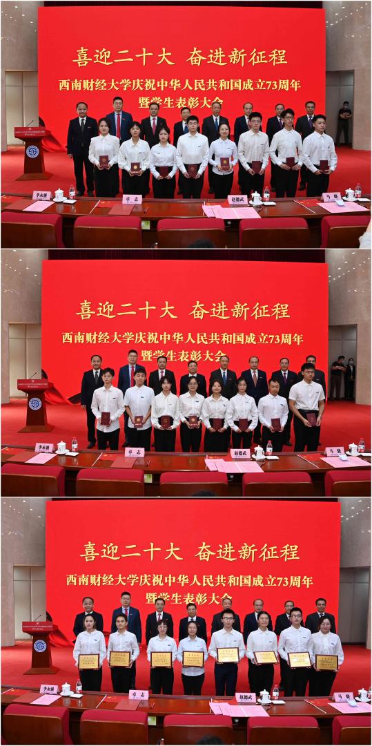 會上,李永強宣讀《關于表彰西南財經大學2021-2022學年“三好學生、優秀學生干部、先進班集體”獲得者的決定》。