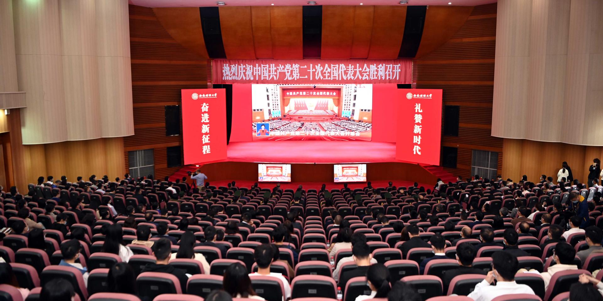 西南財經(jīng)大學黨委高度重視、統(tǒng)籌安排,各院級黨組織、各單位精心組織、有力落實,集中收看與自主收看相結合,全校師生在柳林、光華校區(qū)主會場和90余個分會場,在辦公室、教室、學生宿舍、學校食堂、居住地等通過電視、網(wǎng)絡、廣播等方式,多層次、多渠道、多形式收看收聽中國共產(chǎn)黨第二十次全國代表大會開幕會盛況。黨委書記趙德武,黨委副書記、校長卓志等全體校領導,兩委委員,職能教輔部門全體負責人和各學院(研究院)院長,機關與直屬單位黨委黨員代表,黨員教師、黨員學生和師生代表,國旗班成員代表在主會場集中收看。