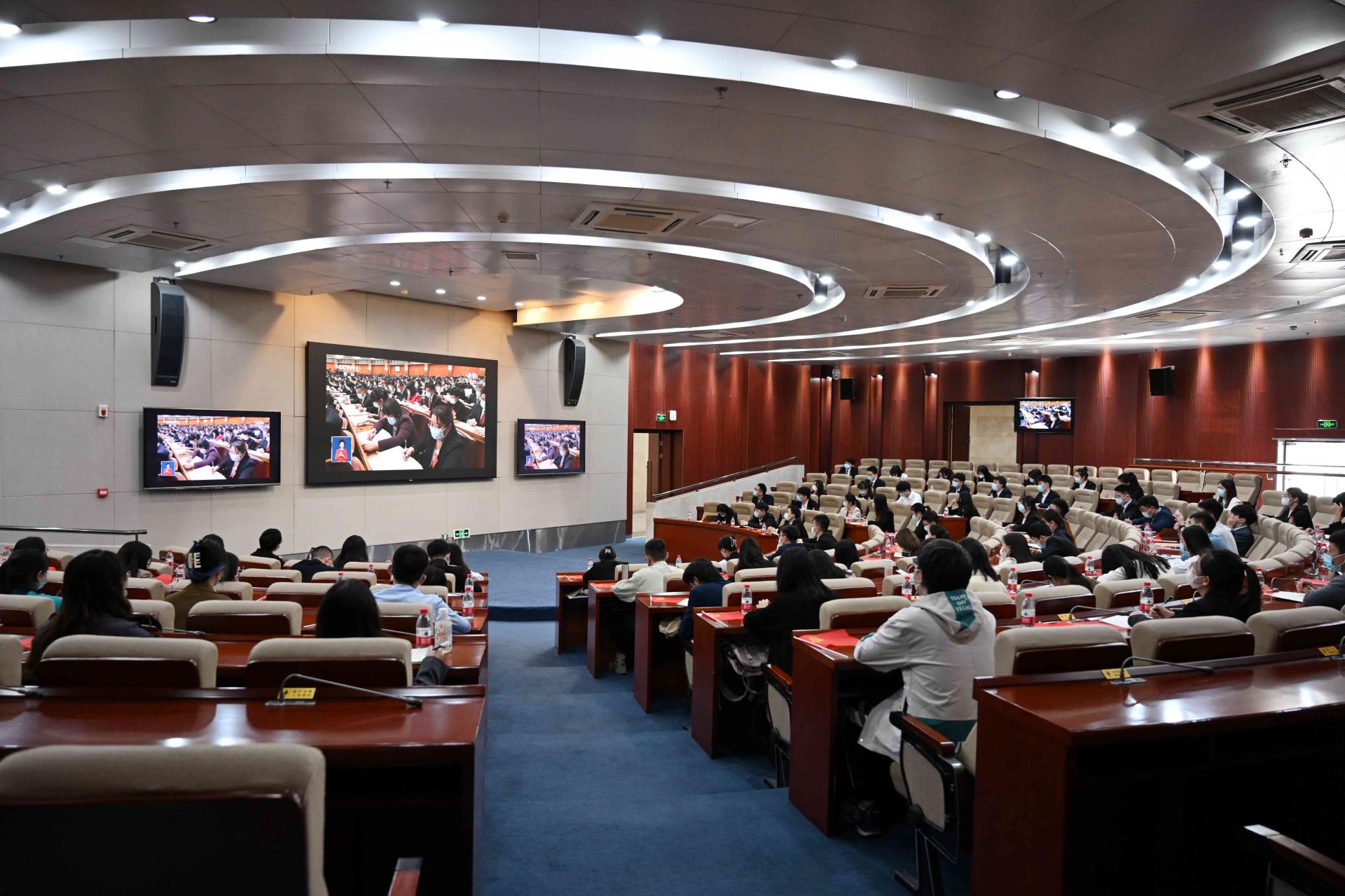 10時整,中國共產(chǎn)黨第二十次全國代表大會開幕會正式開始,西財師生跟隨直播齊聲高唱中華人民共和國國歌。開幕會全程,大家聚精會神聆聽、認真學習記錄,倍感振奮、深受鼓舞,現(xiàn)場一次次響起熱烈掌聲。