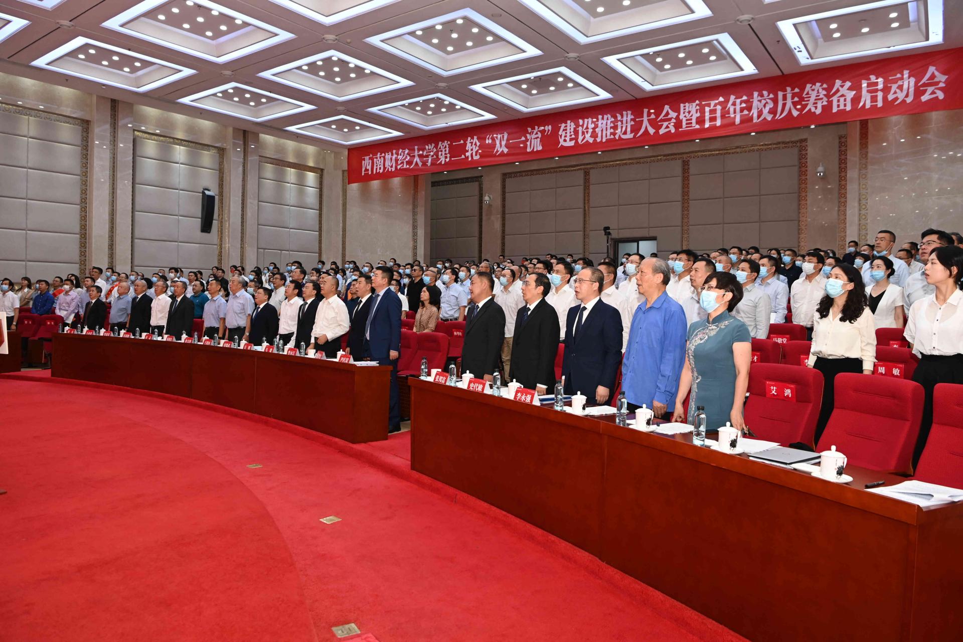 黨委書記趙德武以《服務國之大者 建設世界一流 為全面建設社會主義現(xiàn)代化國家作出新貢獻》為題講話。他指出,推進“雙一流”建設是以習近平同志為核心的黨中央作出的重大戰(zhàn)略決策部署,是新時代我國高等教育強國建設的引領性、標志性工程。習近平總書記深刻闡釋了“雙一流”建設“為什么建、怎么建”等重大理論和實踐問題,為新時代我國高等教育改革發(fā)展和學校“雙一流”建設提供了根本遵循。趙德武強調,第二輪“雙一流”建設是學校實現(xiàn)高質量發(fā)展、建設財經(jīng)特色鮮明世界一流大學的必然要求,對學校發(fā)展具有重大戰(zhàn)略意義和深遠歷史意義,并就深入推進第二輪“雙一流”建設做出全面部署,提出工作要求。要提高政治站位,切實增強辦好中國特色世界一流大學的政治自覺,深刻把握新發(fā)展階段“雙一流”建設“更加突出培養(yǎng)一流人才、服務國家戰(zhàn)略需求、爭創(chuàng)世界一流”的鮮明導向,扎實走好人才自主培養(yǎng)之路,全面提高服務區(qū)域發(fā)展和國家重大戰(zhàn)略的能力,讓“爭創(chuàng)一流、追求高質量”成為學校全體成員的自覺行動和文化追求。要服務“國之大者”,自覺強化服務區(qū)域發(fā)展和國家戰(zhàn)略的使命擔當,堅持把服務國家作為最高追求,認真落實立德樹人根本任務,加快構建中國特色哲學社會科學,深入踐行“創(chuàng)新第一動力”發(fā)展理念,以更大擔當肩負“人才培養(yǎng)主陣地、基礎研究主力軍、科技創(chuàng)新策源地”重要使命。要堅定必勝信念,廣泛凝聚師生校友社會力量共創(chuàng)一流的強大合力。精心籌備、認真組織好百年校慶,是全體師生校友的共同愿望和責任,要突出“大學味道、歷史厚重、百年輝煌”,精心制定工作方案,組織實施系列建設項目和專題活動,講好西財故事、傳播好西財聲音,充分展現(xiàn)學校的歷史傳統(tǒng)、精神文化、名師大家和團結奮進。趙德武要求,各級黨組織要強化主體責任,黨員干部師生要帶好頭、當先鋒,高質量推進“五大建設任務”和“五大改革任務”,確保第二輪“雙一流”各項目標任務順利完成。入選“光華英才工程”的教師們要珍惜榮譽、肩負重任,努力做到方向明、主義真、學問高、德行正,成為“雙一流”建設主力軍。廣大校友要一如既往地關心和支持母校的發(fā)展,積極參與到共同的宏偉事業(yè)中,為奠基百年西財添磚加瓦、增光添彩。全體西財人要堅定自信自覺、堅持自立自強,以“時時放心不下”的責任感和“處處奮勇爭先”的使命感,全身心投入學校“雙一流”建設,加快建設財經(jīng)特色鮮明的世界一流大學,以實際行動迎接黨的二十大勝利召開。