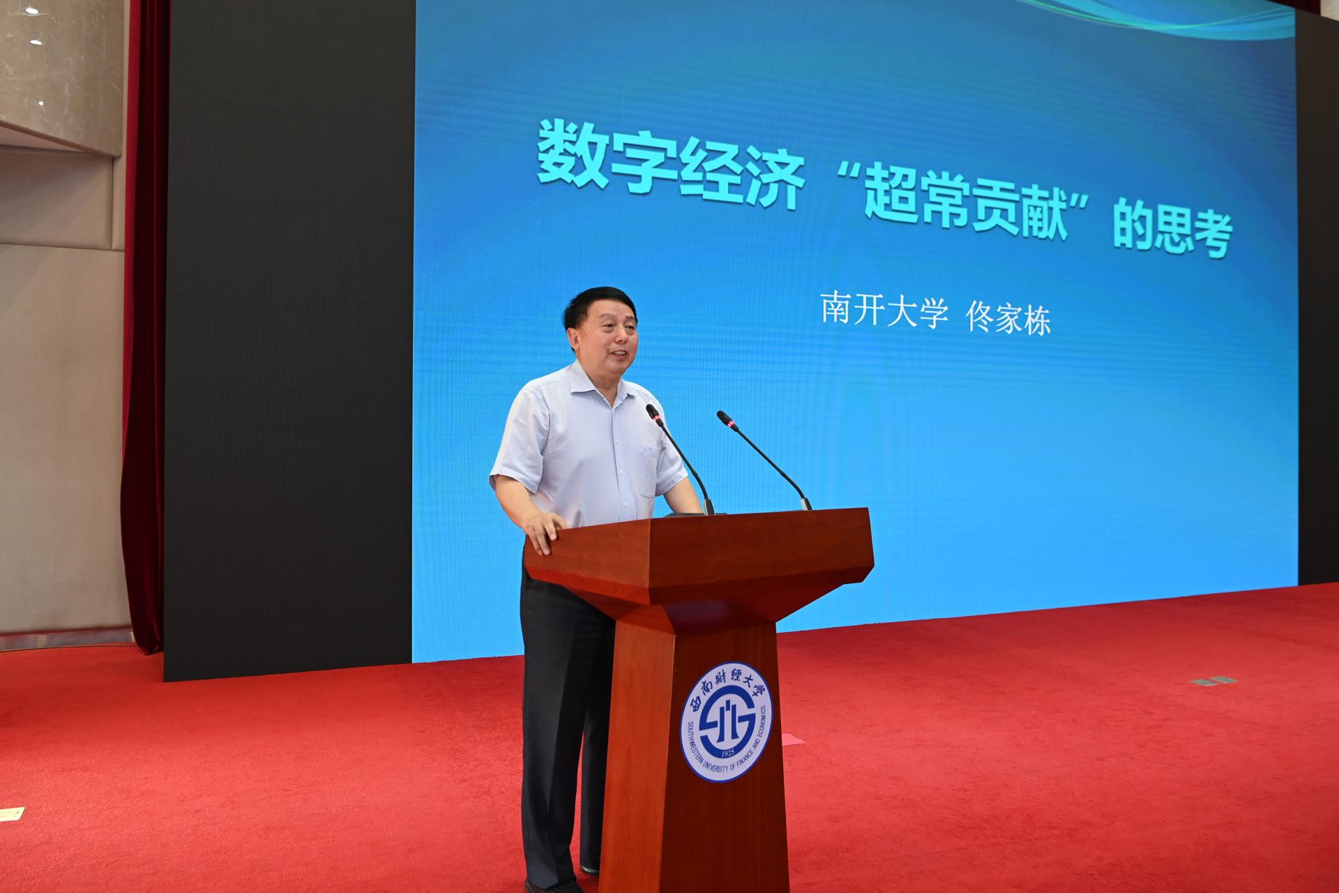 尹慶雙主持了主旨報(bào)告環(huán)節(jié)。陳曉紅以《數(shù)字經(jīng)濟(jì)時(shí)代的科技創(chuàng)新與人才培養(yǎng)》為題,深入分析了當(dāng)前數(shù)字經(jīng)濟(jì)發(fā)展面臨的機(jī)遇與挑戰(zhàn),介紹了數(shù)字技術(shù)賦能產(chǎn)業(yè)變革與應(yīng)用創(chuàng)新并與實(shí)體經(jīng)濟(jì)深度融合的多種場(chǎng)景,分享了數(shù)字經(jīng)濟(jì)復(fù)合型人才培養(yǎng)的路徑探索。石勇以《數(shù)字經(jīng)濟(jì)的發(fā)展與未來(lái)》為題,深入探討了數(shù)字經(jīng)濟(jì)的基本理論和技術(shù)問(wèn)題,詳細(xì)介紹了國(guó)際國(guó)內(nèi)數(shù)字經(jīng)濟(jì)的發(fā)展現(xiàn)狀,并提出了持續(xù)強(qiáng)化數(shù)據(jù)開放與數(shù)據(jù)保護(hù)等建議。劉元春以《數(shù)字經(jīng)濟(jì)與經(jīng)濟(jì)理論的變革》為題,詳細(xì)解讀了數(shù)字經(jīng)濟(jì)不同于傳統(tǒng)經(jīng)濟(jì)的運(yùn)行特征,指出傳統(tǒng)的經(jīng)濟(jì)理論難以解釋數(shù)字時(shí)代的經(jīng)濟(jì)現(xiàn)象,迫切需要建立數(shù)字經(jīng)濟(jì)學(xué)科專業(yè),探索研究數(shù)字經(jīng)濟(jì)新的發(fā)展規(guī)律和理論范式。佟家棟以《數(shù)字經(jīng)濟(jì)“超常貢獻(xiàn)”的思考》為題,深入闡釋了數(shù)字經(jīng)濟(jì)的概念內(nèi)涵、價(jià)值與價(jià)值量,分享了在數(shù)字產(chǎn)品與數(shù)字資本、數(shù)字產(chǎn)業(yè)化與產(chǎn)業(yè)數(shù)字化方面的深度思考,指出了數(shù)字經(jīng)濟(jì)在國(guó)民經(jīng)濟(jì)各個(gè)環(huán)節(jié)的“超常貢獻(xiàn)”。李慶以《數(shù)字經(jīng)濟(jì)之西財(cái)布局與實(shí)踐》為題,立足學(xué)校金融科技學(xué)科優(yōu)勢(shì),從金融場(chǎng)景的數(shù)據(jù)處理和分析、數(shù)據(jù)要素交易市場(chǎng)、數(shù)字貨幣三個(gè)方面詳細(xì)介紹了西財(cái)服務(wù)數(shù)字經(jīng)濟(jì)發(fā)展的現(xiàn)狀、思路和規(guī)劃。