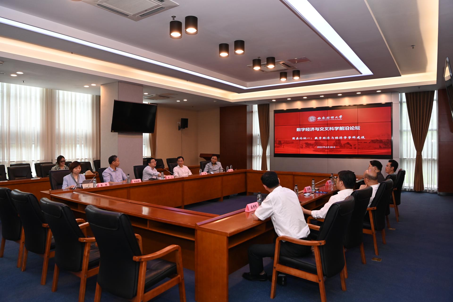 6月28日下午,學(xué)校在弘遠(yuǎn)樓105會(huì)議室舉行“數(shù)字經(jīng)濟(jì)與交叉科學(xué)前沿論壇”。論壇以“數(shù)字經(jīng)濟(jì)與交叉科學(xué)及一流學(xué)科建設(shè)”為主題,由大會(huì)主旨報(bào)告和圓桌論壇兩個(gè)階段組成,采取線上和線下相結(jié)合的方式舉行。中國(guó)工程院院士、湖南工商大學(xué)黨委書記陳曉紅教授,發(fā)展中國(guó)家科學(xué)院院士、中國(guó)科學(xué)院虛擬經(jīng)濟(jì)與數(shù)據(jù)科學(xué)研究中心主任石勇教授,上海財(cái)經(jīng)大學(xué)黨委副書記、校長(zhǎng)劉元春教授,南開大學(xué)原副校長(zhǎng)、數(shù)字經(jīng)濟(jì)交叉科學(xué)中心主任佟家棟教授,我校黨委副書記、校長(zhǎng)卓志教授,黨委常委、副校長(zhǎng)尹慶雙教授,以及教師代表等一百多人參加論壇。