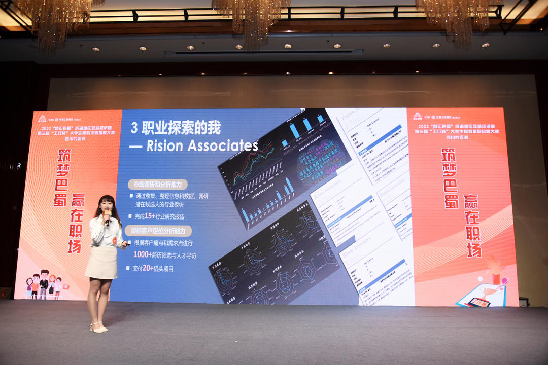 本屆大賽四川賽區賽事按高校初賽、線上復賽、全省決賽三個階段進行,來自四川大學、西南交通大學、西南財經大學等111所高校參賽,報名人數9109人,共有102名選手晉級四川片區復賽、48名選手晉級四川片區決賽。許佩瑤同學以優秀的綜合素質、良好的邏輯思維、應變能力和創新能力,在決賽個人展示、結構化面試、無領導小組討論等環節良好地展現了西財學子的風采。