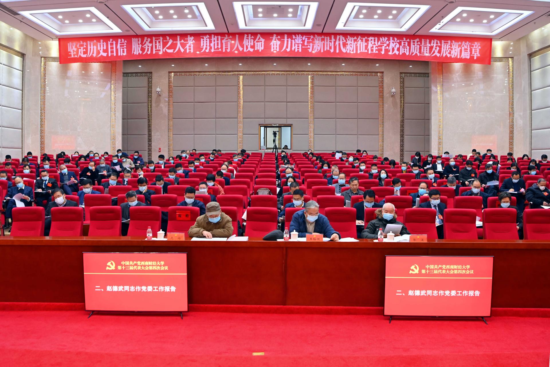 大會通過了趙德武同志代表學(xué)校黨委所作的工作報告,審議通過了《中國共產(chǎn)黨西南財經(jīng)大學(xué)第十三屆代表大會第四次會議決議》。