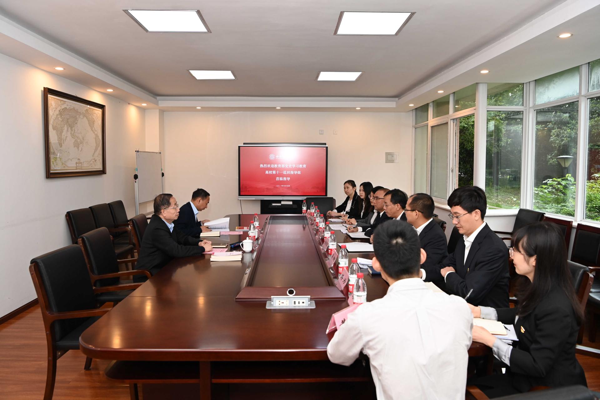 10月15日,教育部黨史學習教育高校第十一巡回指導組到校指導工作。巡回指導組組長鄭德濤,副組長趙忠、謝守成等全體成員到校實地指導。學校黨史學習教育領導小組組長、黨委書記趙德武,學校黨史學習教育領導小組副組長、黨委副書記馬驍,學校黨史學習教育領導小組辦公室各工作組組長及相關單位負責人參加見面會和相關調研訪談。