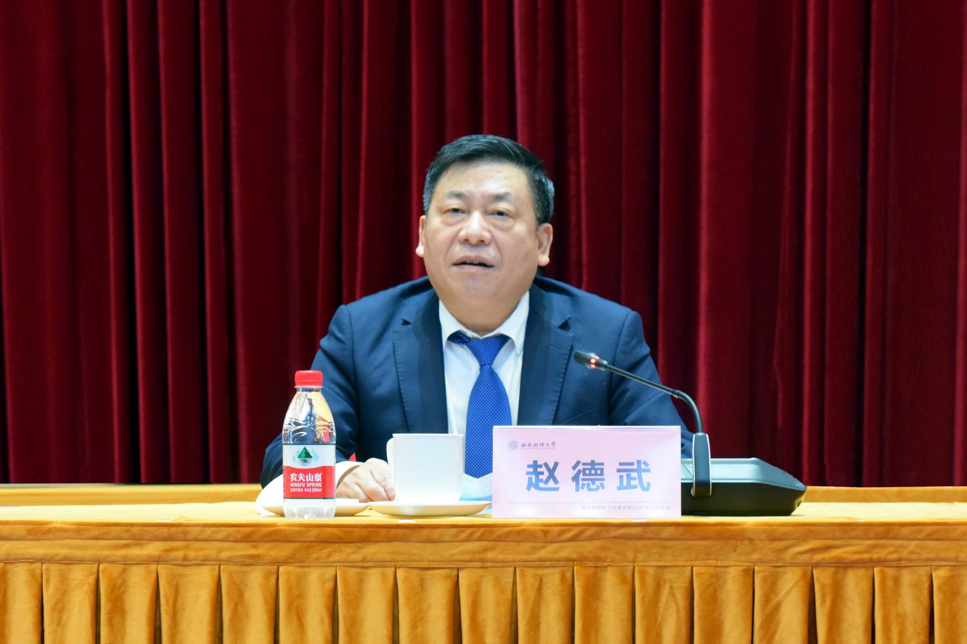 趙德武在會上講話。他高度肯定了本次會議取得的成果,深入闡釋了本次學校章程修訂和人事分配制度改革的重大意義和理念思路,并圍繞學習宣傳貫徹好大會精神提出三點意見。一是以修訂學校章程為契機,進一步推動學校治理體系和治理能力現代化。本次章程修訂堅持以習近平新時代中國特色社會主義思想為指導,有效融入了學校改革建設發展的新理念、新戰略、新成果,是學校深入推進依法治校、深化新時代教育評價改革、促進學校治理體系和治理能力現代化建設的重要保障。全校上下要重點做好學校章程的學習宣傳貫徹工作,準確把握章程的文本條款,做到知章程、學章程、用章程、守章程;緊密結合學校新一輪“雙一流”建設、“十四五”規劃實施等加強貫徹落實,推動學校高質量發展;推動形成以章程為核心的學校規章制度體系,全面提升學校治理體系和治理能力現代化。二是以深化新一輪人事分配制度改革為動力,進一步激發學校創新發展活力。此次改革是貫徹落實上級要求的具體實踐,是加快“雙一流”建設的迫切需要,是深化學校綜合改革的重要舉措,對于進一步完善學校內部治理體系,破除用人和分配機制瓶頸,激發教職工內生動力和創新活力,增強發展平衡性、協調性、包容性具有十分重要的意義。各位代表要提高政治站位,以主人翁精神來認識改革、支持改革、推進改革;各級黨組織要加強組織領導、宣傳引導和督促指導,強化大局意識、全局意識,努力營造推動改革的良好氛圍,讓推進改革成為全體西財人的共同行動。三是以履職盡責的實際行動推動學校高質量發展。要全面貫徹黨的教育方針,堅持不懈用習近平新時代中國特色社會主義思想鑄魂育人,自覺加強師德修養,做學生為學、為事、為人的“大先生”;要牢固樹立以師生為中心的發展思想,用心用力解決師生“急難愁盼”問題,以黨史學習教育為契機,充分發揮好基層黨組織戰斗堡壘作用、黨員先鋒模范作用和教代會代表的橋梁紐帶作用,不斷增強師生員工的獲得感、幸福感和成就感;要立足本職勇于擔當,對照學校年度黨政工作要點做好年度各項工作任務,同時要做好疫情防控、維護學校安全穩定工作,凝心聚力推動學校“十四五”開好局起好步。趙德武強調,學校教職工代表大會是教職工依法參與學校民主管理和監督的基本形式,希望各位代表認真學習宣傳貫徹好本次會議精神,強化政治意識、大局意識、擔當意識、表率意識,引導全校師生員工把思想和行動統一到工作部署上來,立足本職、忠實履責,為加快推進財經特色鮮明的世界一流大學建設做出新的更大貢獻。