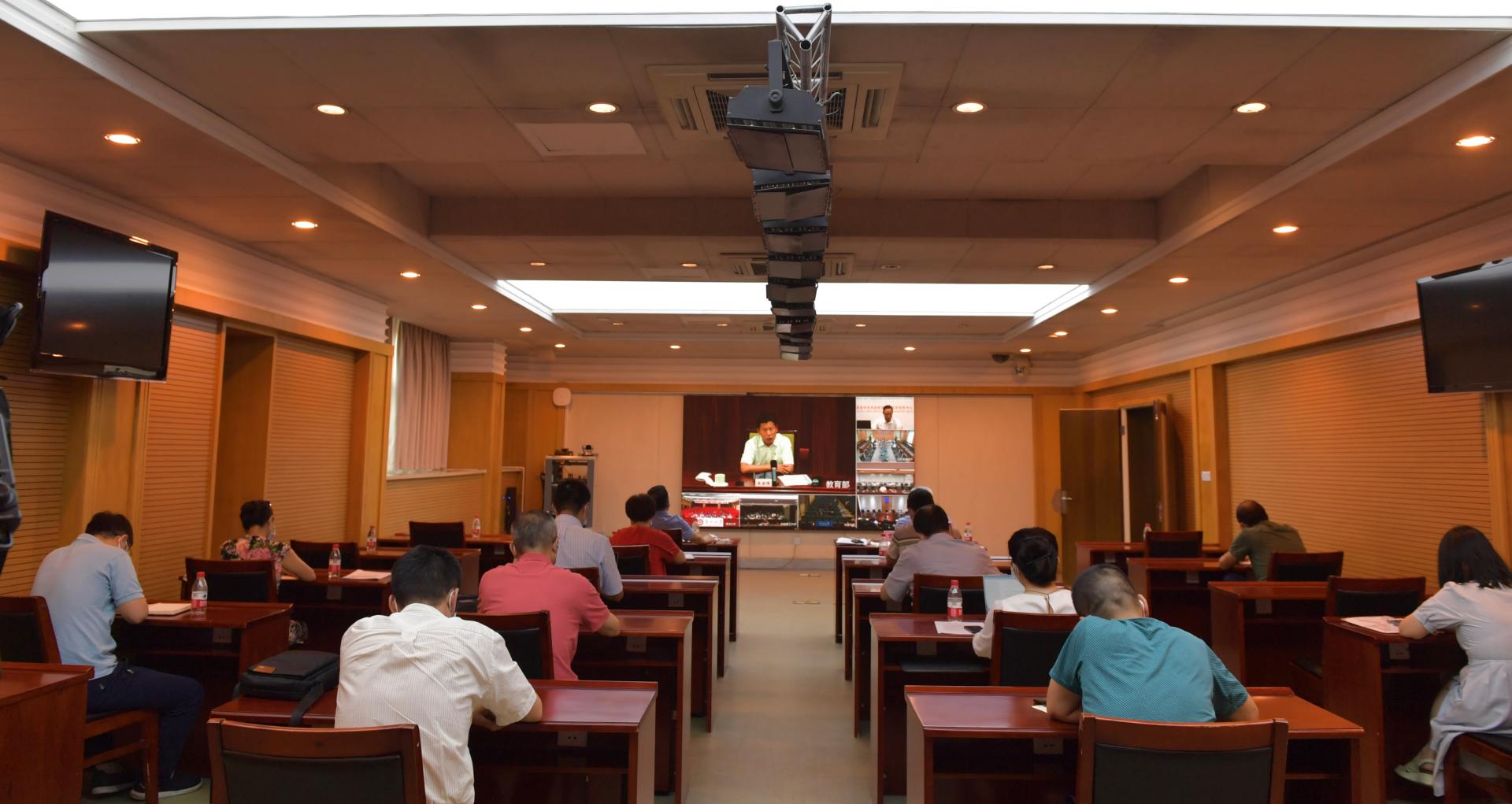 8月9日,教育部召開全國教育系統(tǒng)疫情防控工作視頻調(diào)度會議,深入貫徹國務(wù)院聯(lián)防聯(lián)控機(jī)制電視電話會議精神,部署近期教育系統(tǒng)疫情防控和秋季開學(xué)等工作。教育部應(yīng)對疫情工作領(lǐng)導(dǎo)小組相關(guān)專項(xiàng)工作組負(fù)責(zé)人,各省級教育部門、部屬高校、部省合建高校分管負(fù)責(zé)人和相關(guān)處室負(fù)責(zé)人參會。我校在騰驤樓101會議室設(shè)分會場,學(xué)校疫情防控工作領(lǐng)導(dǎo)小組辦公室主任、黨委副書記曾道榮和黨委常委、副校長史代敏,學(xué)校疫情防控工作領(lǐng)導(dǎo)小組辦公室各工作組負(fù)責(zé)人,學(xué)工部、信息與教育技術(shù)中心負(fù)責(zé)人參加分會場會議。