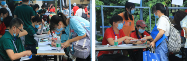 修繕一新的校園環境,一花一木的精心點綴,整潔明亮的學生公寓,高效便捷的報到流程……迎新工作的一點一滴都承載著學校對新生的暖心關懷。暑熱未褪,防疫工作人員身著悶熱的隔離服一絲不茍地為每一位同學檢測體溫、消毒行李、更換口罩,精心呵護著大家的生命安全與身體健康;一輛輛滿載新同學和行李箱的擺渡車、搬運車穿梭校園,幫助新同學們輕松抵達目的地;身著“西財藍”“志愿紅”的迎新志愿者忙著為學弟學妹們提供指引、派發物資、搬運行李;后勤服務總公司貼心地為大家準備了牛奶、面包、礦泉水等愛心便餐包,保障同學們等待核酸檢測結果時的正常飲食……全體教職員工齊心協力為新生入學保駕護航,讓新同學們深切體會到西財大家庭的和諧溫暖。