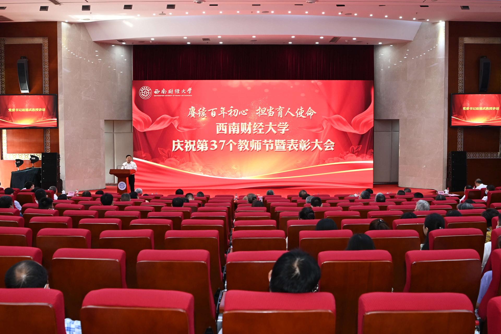 9月10日下午,學(xué)校在弘遠(yuǎn)樓105會(huì)議室隆重舉行慶祝第37個(gè)教師節(jié)暨表彰大會(huì),表彰先進(jìn)集體和優(yōu)秀個(gè)人,舉行榮休及從教30周年紀(jì)念儀式。學(xué)校老領(lǐng)導(dǎo)王裕國(guó),黨委書(shū)記趙德武,黨委副書(shū)記、校長(zhǎng)卓志,黨委常委、常務(wù)副校長(zhǎng)彭龍,黨委副書(shū)記馬驍、曾道榮,黨委常委、副校長(zhǎng)歐兵、尹慶雙、史代敏、張邦富、李永強(qiáng),獲獎(jiǎng)集體和個(gè)人,職能部門及學(xué)院(中心)代表,民主黨派代表,港澳臺(tái)及外籍教師代表,離退休教職工及新入職教職工代表參加大會(huì)。卓志主持大會(huì)。