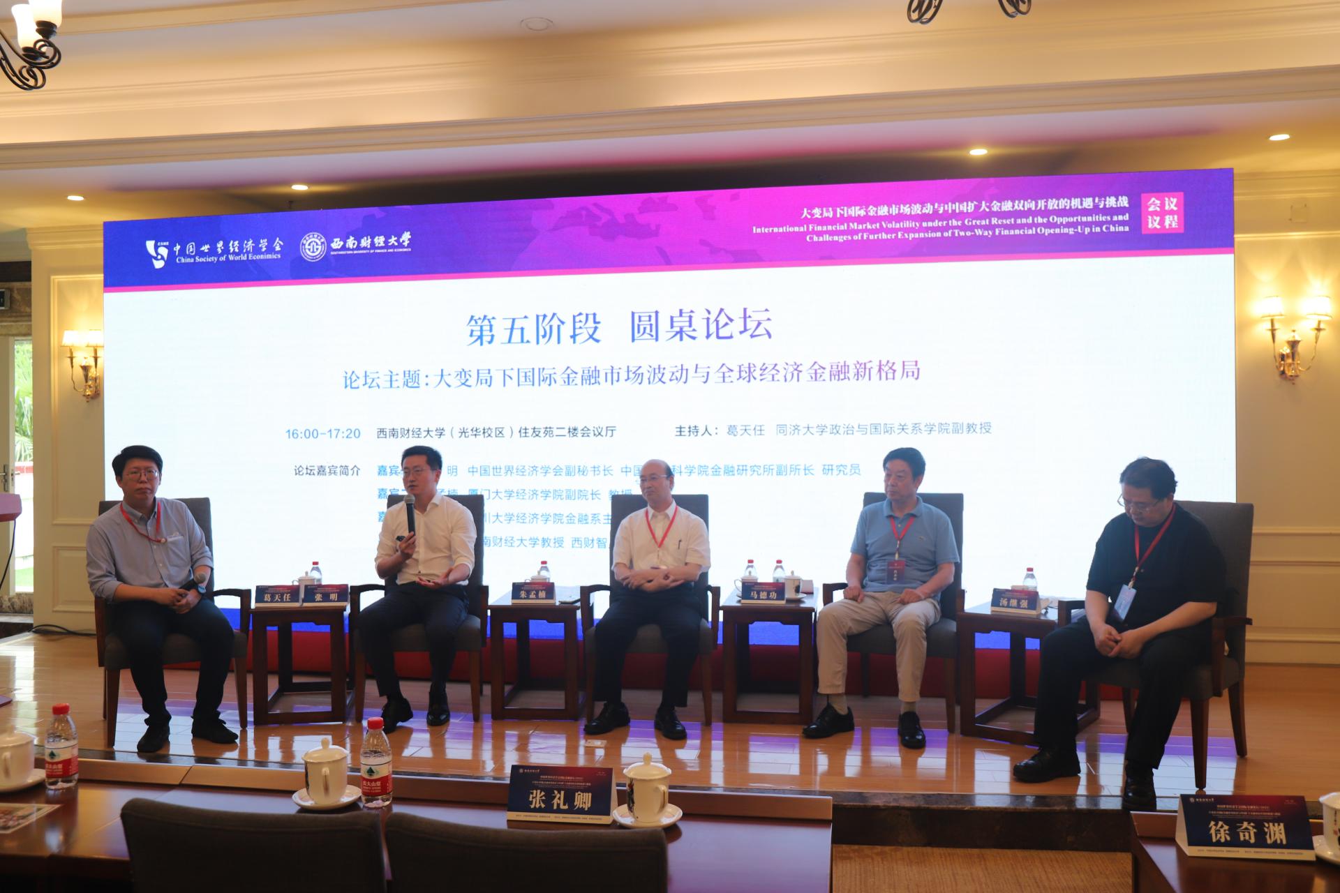 分論壇結束后,會議進行了主題為“大變局下國際金融市場波動與中國擴大金融雙向開放的機遇與挑戰”的圓桌論壇,由同濟大學葛天任副教授主持。中國社科院張明研究員、廈門大學朱孟楠教授、四川大學馬德功教授、我校湯繼強教授參與討論,針對與會嘉賓提出的大變局是什么、是否是新格局人民幣國際化、國際金融市場與國內金融市場聯動等問題發表精彩獨到的見解。