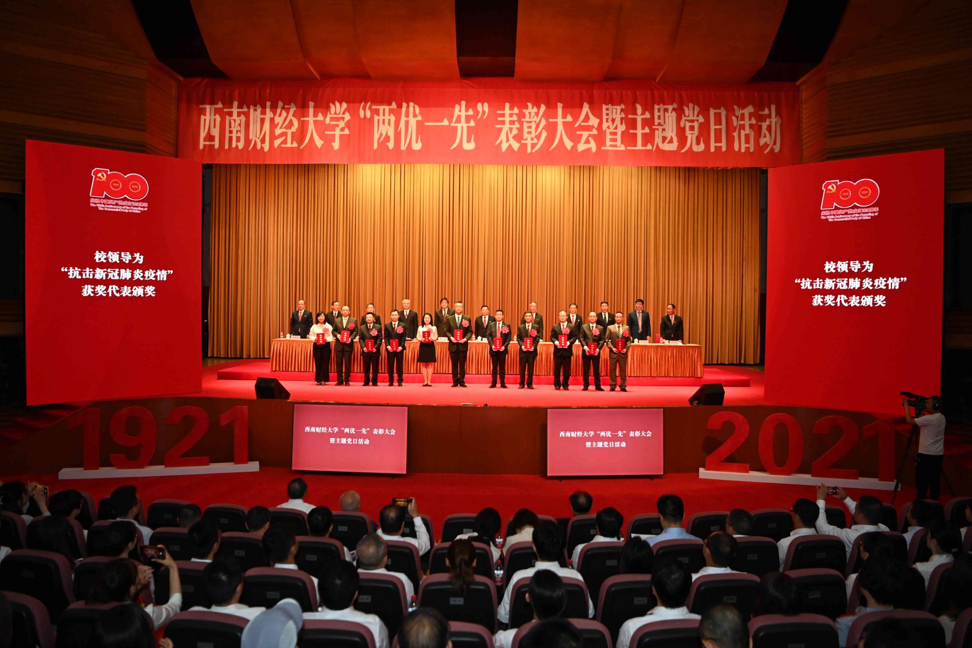百年大黨恰風華,砥礪初心向復興!6月30日,西南財經大學柳林校區大學生活動中心禮堂氣氛莊重熱烈。學校在此隆重舉行“兩優一先”表彰大會暨“奮斗百年路 啟航新征程”主題黨日活動,慶祝中國共產黨成立100周年,回顧中國共產黨百年奮斗的光輝歷程,表彰優秀共產黨員、優秀黨務工作者和先進基層黨組織,表彰新冠疫情防控中的先進集體和先進個人,舉行主題黨日活動和新黨員入黨宣誓、老黨員重溫入黨誓詞,動員全校黨員干部和師生員工立足“兩個大局”,心懷“國之大者”,永葆黨的初心使命,奮力書寫時代答卷,為建設財經特色鮮明的世界一流大學,為加快實現教育現代化、建設高等教育強國,為建設社會主義現代化強國而努力奮斗。全體校領導,學校老領導,黨委委員、紀委委員,全體中層干部,“兩優一先”代表,抗擊新冠肺炎疫情工作優秀團隊和優秀個人代表,學校第十三次黨代會代表,學校特聘組織員,各分黨委、黨總支、直屬黨支部專職組織員,教工黨支部書記、學生黨支部書記代表,師生黨員代表參加大會。黨委書記趙德武講話,黨委副書記、校長卓志主持表彰大會。