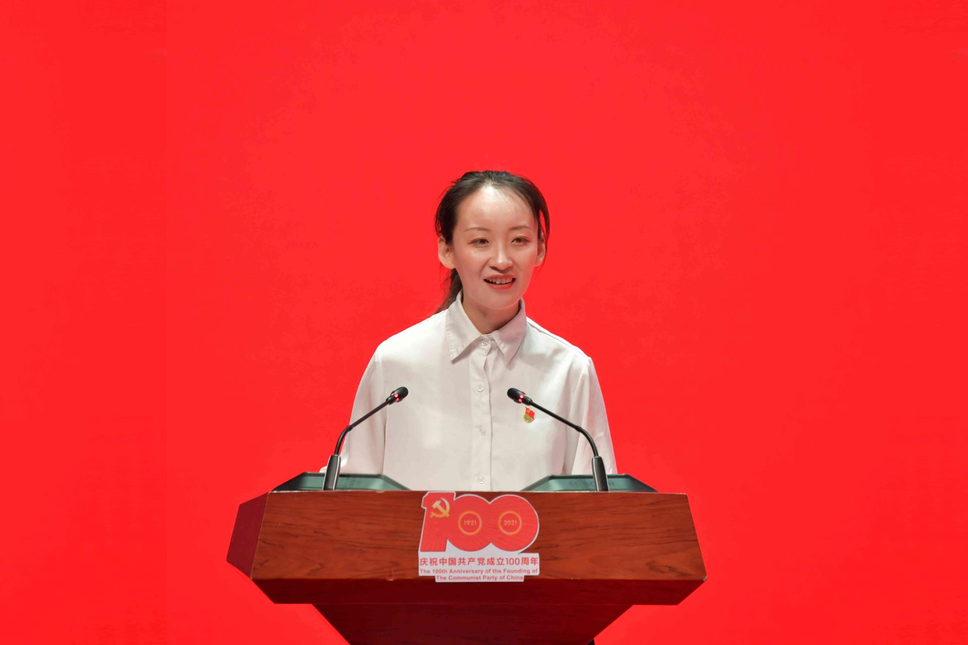 “光榮在黨50年”紀念章獲得者代表,學校原黨委副書記、紀委書記廖明銓通過“初心的故事”“奮斗的故事”“傳承的故事”深情詮釋了一名老黨員初心不改感黨恩、聽黨話、跟黨走,一顆紅心獻給黨,為黨的事業奮斗終身的真摯赤誠。教授代表李萍從一個承前啟后的西財人視角,深情講述了一代代西財學者堅持“一個內核”、鑄造“一座燈塔”、傳承“一種情懷”,在黨的堅強領導下傳承學科紅色基因,在大師先賢引導下傳道受業解惑,在師者情懷熏陶下潛心立德樹人的雋永篇章。先進基層黨組織代表陳宗權回顧了在學校黨委堅強領導下,基層黨組織用團結偉力堅決打贏脫貧攻堅戰,用組織偉力堅決打贏疫情防控阻擊戰和平安校園保衛戰,用奮斗偉力堅決打贏改革攻堅戰、發展持久戰,充分展現基層黨組織深厚凝聚力、強大組織力、高效執行力的生動實踐。優秀共產黨員、優秀黨務工作者代表張諦用“擔當”“責任”“踐行”三個關鍵詞背后的故事,生動再現了西財共產黨員在地震、疫情等危急時刻挺身而出,在脫貧攻堅戰場堅決貫徹落實組織決策部署,在生活工作中為師生辦實事解難事的擔當與奉獻。青年教師代表王翔宇認為“有理想信念”是當今這個時代教育強國道路上人民教師的第一身份印記,立志和所有青年教師一起,做最忠誠、最堅定的馬克思主義傳播者,以“四有好老師”“四個相統一”“六個要”為師德大道,為實現民族復興偉業釋放能量。學生黨員代表劉彥深情回顧了自己太爺爺一生忠于黨、獻身黨的紅色故事,講述了自己傳承紅色基因,聽黨話、跟黨走,在西部計劃中致力教育扶貧,努力讓青春在為祖國、為民族、為人民的不懈奮斗中綻放絢麗之花的珍貴記憶。