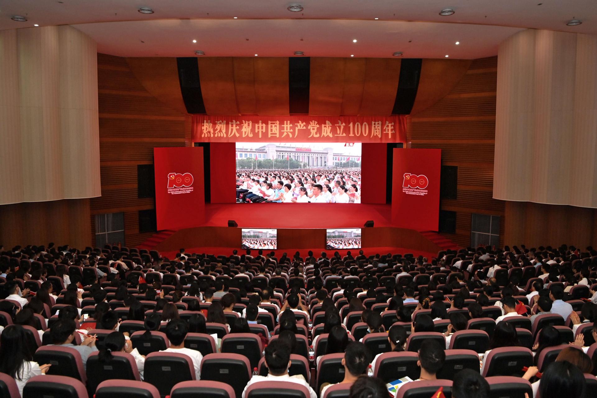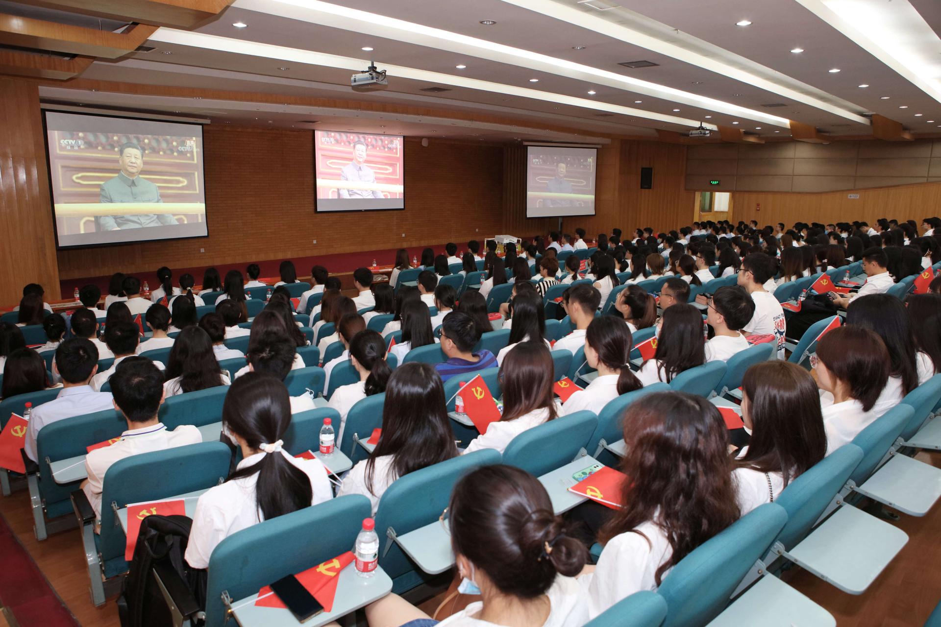 7月1日上午,慶祝中國共產黨成立100周年大會在北京天安門廣場隆重舉行。中共中央總書記、國家主席、中央軍委主席習近平發表重要講話。西南財經大學黨委書記趙德武,黨委副書記、校長卓志等全體校領導和全校師生員工、離退休老同志滿懷期待與喜悅之情,在柳林校區、光華校區40余個集中收看會場,以及教室、會議室、寢室等,通過各種形式收看慶祝大會實況,聆聽習近平總書記重要講話,同全黨全國各族人民一道,慶祝中國共產黨成立100周年,回顧中國共產黨百年奮斗的光輝歷程,展望中華民族偉大復興的光明前景。