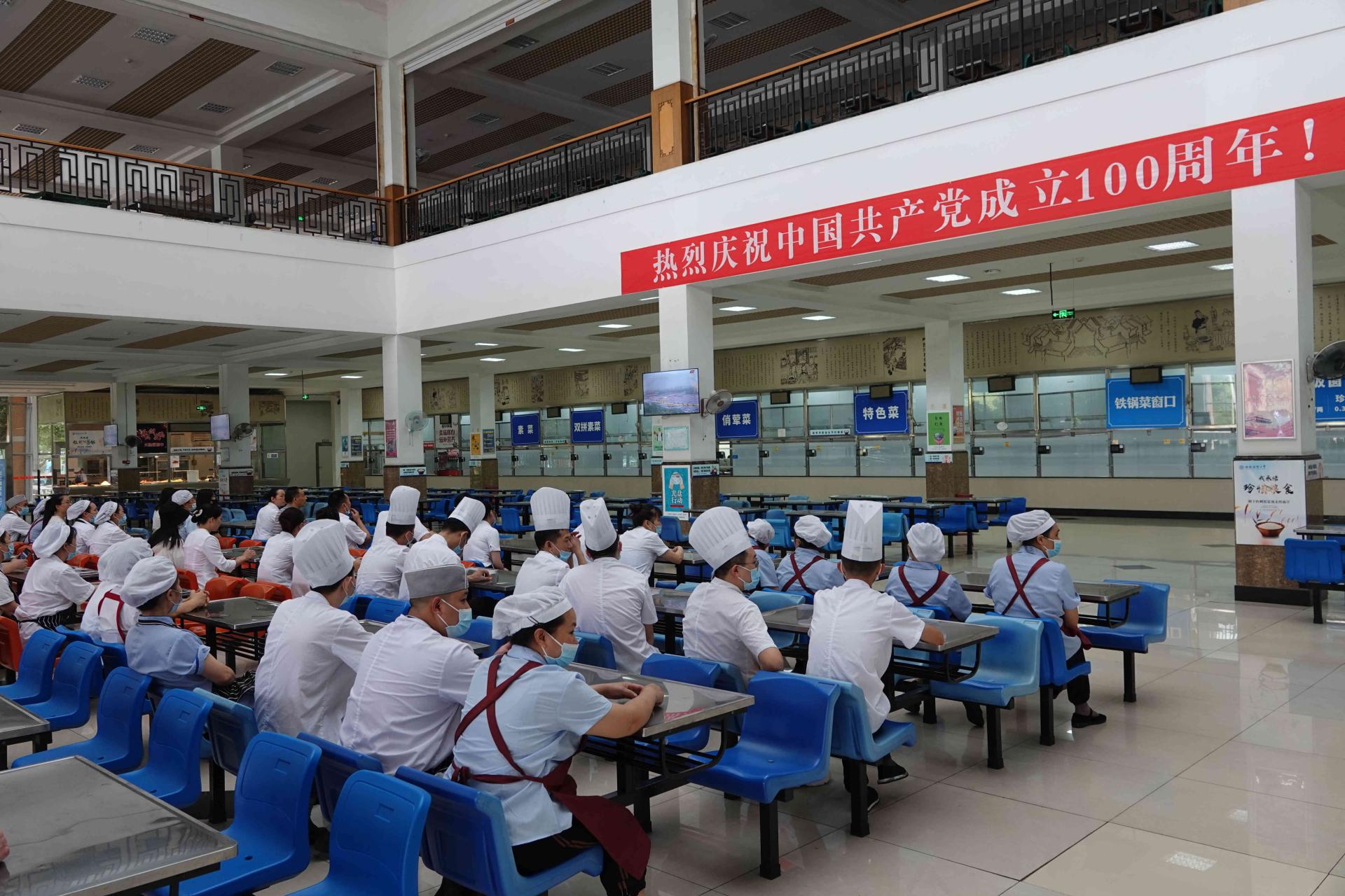 西南財經大學校園內,洋溢著濃郁熱烈的喜慶氣氛。“熱烈慶祝中國共產黨成立100周年!”等條幅在校園中格外鮮艷奪目、催人奮進。清晨7點50分,學校各個集中觀看會場已經座無虛席。設在柳林校區學生活動中心800人廳的學校集中觀看主會場紅旗招展、氣氛熱烈,一片歡聲笑語,洋溢著盛大節日的歡快氛圍。學校全體校領導、各學院(中心)、職能部門負責人和教師代表、學生代表一同觀看。
