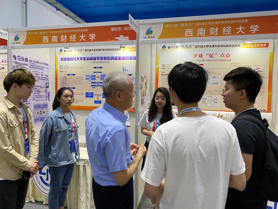賽事開展期間,我校黨委副書記曾道榮蒞臨現(xiàn)場觀摩我校參賽團隊成果。來自會計學院的參賽學生張可詳細介紹了他們的項目《“新新人類”的互聯(lián)網(wǎng)理財——關(guān)于互聯(lián)網(wǎng)理財產(chǎn)品對大學生理財和消費觀的影響研究》。該項目研究得出了互聯(lián)網(wǎng)理財經(jīng)驗越豐富的大學生越愿意選擇收益率更高的長期互聯(lián)網(wǎng)理財產(chǎn)品,且多數(shù)大學生是“保守”投資者的結(jié)論,并對大學生在理財、消費行為中存在的問題提供了可行性建議與對策。來自財稅學院的武子琳同學展示了他們《稅收征管失范行為研究——基于320份全國訴訟判決案例和川渝地區(qū)實地調(diào)研訪談》這一項目的成果:團隊對川渝地區(qū)的稅務(wù)機關(guān)和納稅企業(yè)進行調(diào)研訪談,聚焦未進入司法視野的稅收征管失范行為,結(jié)合案例分析和調(diào)研訪談,深入剖析稅務(wù)機關(guān)敗訴情況,并得到“失范”的制度成因和非制度成因。來自金融學院、工商管理學院、馬克思主義學院等學院的項目團隊代表匯報了項目情況。曾道榮充分肯定了各項目團隊所取得的成績,并鼓勵他們繼續(xù)秉持鍥而不舍的求知欲,以聰明才智貢獻國家,以開拓進取服務(wù)社會。
