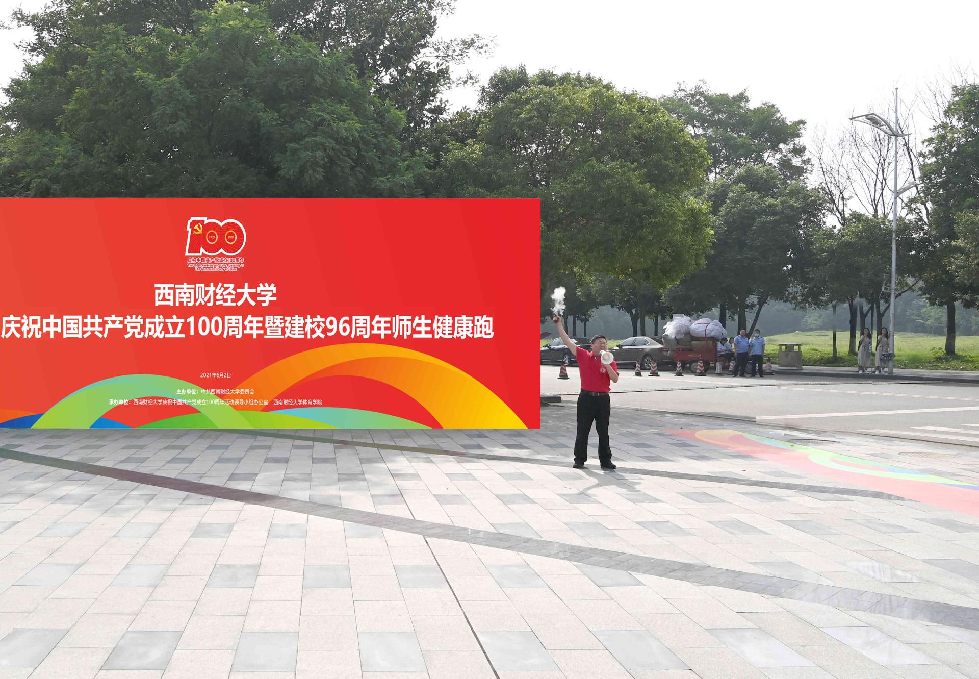 6月2日,西南財經大學在柳林校區舉行慶祝中國共產黨成立100周年暨建校96周年師生健康跑,以寓教于行、健康向上的體育運動進一步激發師生愛黨愛國愛校熱情,用赤誠飽滿、昂揚奮發的師生風貌向黨的百年華誕和建校紀念日獻禮。校領導趙德武、卓志、彭龍、曾道榮、范衛宏、史代敏、張邦富,中層干部、教職工和學生代表參加健康跑。