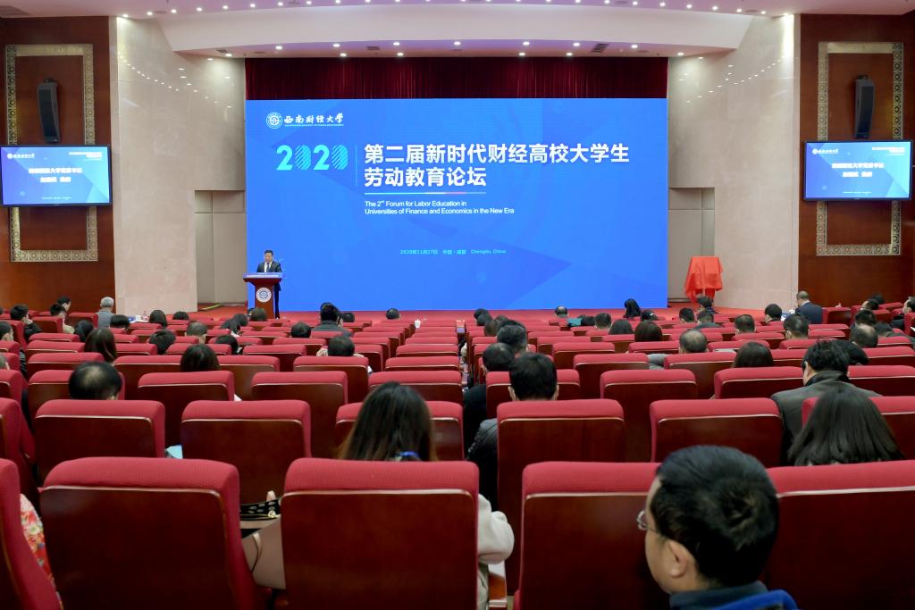 11月27日,在全國深入學習貫徹黨的十九屆五中全會精神、全國勞動模范和先進工作者表彰大會召開之際,“第二屆新時代財經高校大學生勞動教育論壇”在我校柳林校區舉行。四川省委教育工委委員、省政府教育督導委員會專職副主任、教育廳總督學傅明,對外經濟貿易大學黨委副書記文君,中國勞動關系學院黨委常委、副校長劉麗紅,中央財經大學校長助理李濤,中南財經政法大學校長助理、教務部部長李志生,省教育廳宣傳思想與統戰工作處副處長劉海峰;我校黨委書記趙德武,四川師范大學原黨委書記、西南財大馬克思主義經濟研究院院長丁任重,黨委副書記曾道榮,黨委常委、副校長李永強出席論壇。論壇吸引了來自全國36所高校的130余名領導、專家和青年學生代表參與。