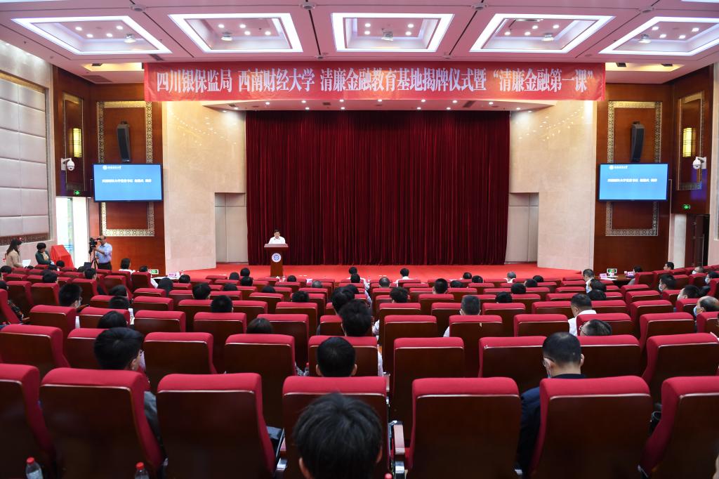 9月22日,四川銀保監局與西南財經大學共建清廉金融教育基地揭牌儀式暨“清廉金融第一課”在我校弘遠樓105會議室舉行。中央紀委國家監委駐中國銀保監會紀檢監察組副組長虞云,四川省紀委副書記、省監委副主任張乾華,四川銀保監局黨委書記、局長陳育林,四川省地方金融監管局黨組成員、機關黨委書記王巖辭,四川銀保監局黨委委員、紀委書記陳志法,四川省紀委監委第二紀檢監察室主任莫紅;我校黨委書記趙德武,校長、黨委副書記卓志,黨委常委、常務副校長彭龍,黨委副書記、紀委書記范衛宏出席儀式。四川省銀行保險機構及行業協會代表,學校相關部門、學院主要負責人及師生代表,清廉金融授課講師團成員參加儀式。彭龍主持儀式。