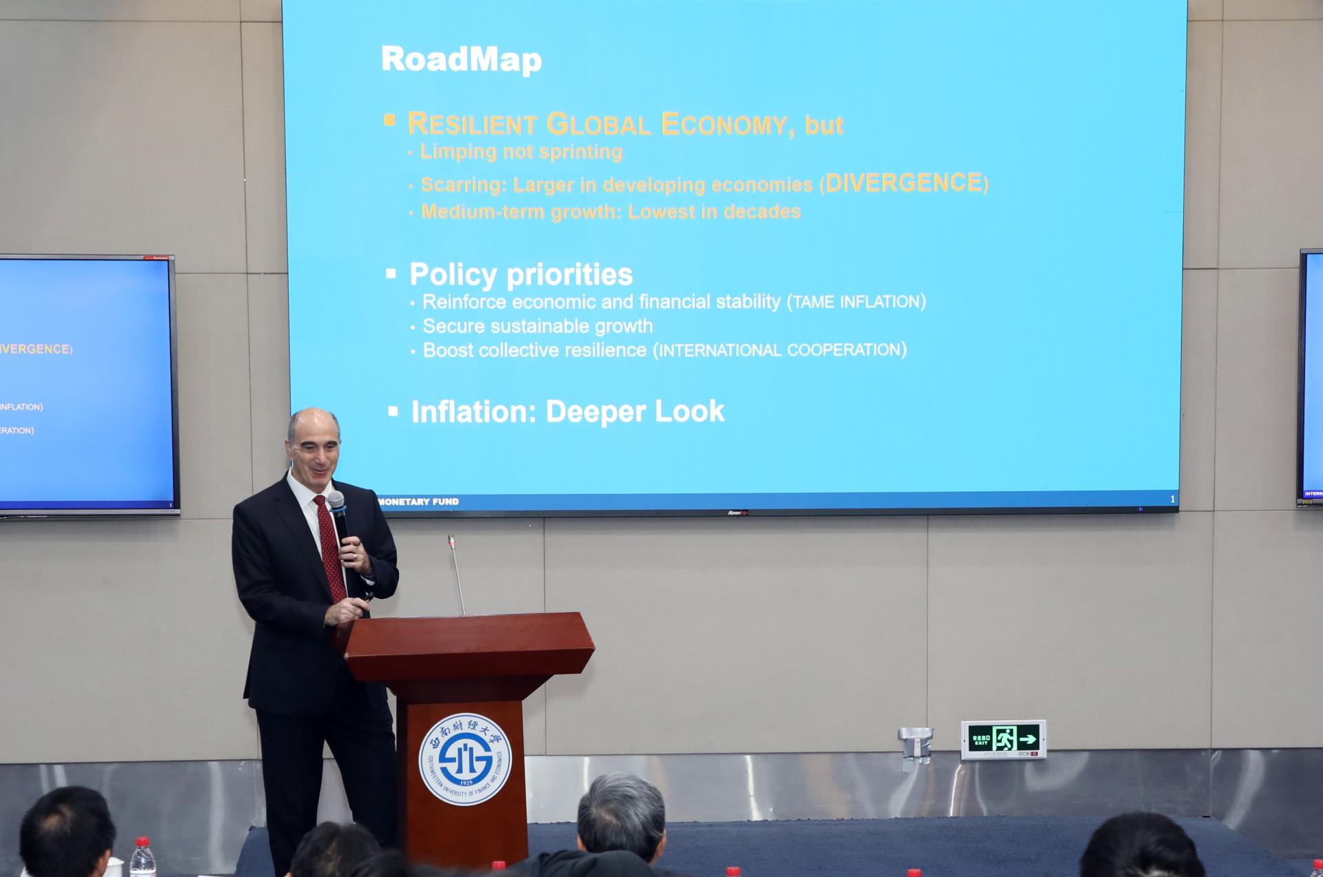 11月21日,由我校金融學院、中國金融研究院主辦的2023“世界經(jīng)濟展望報告”研討會在弘遠樓隆重舉行。學校黨委常委、副校長尹慶雙,國際貨幣基金組織駐華首席代表Steven Alan Barnett,原東方證券首席經(jīng)濟學家邵宇等出席會議參與研討。金融學院、中國金融研究院院長王擎主持研討會,原國際貨幣基金組織執(zhí)行董事、原中國人民銀行國際司司長張之驤主持圓桌論壇。