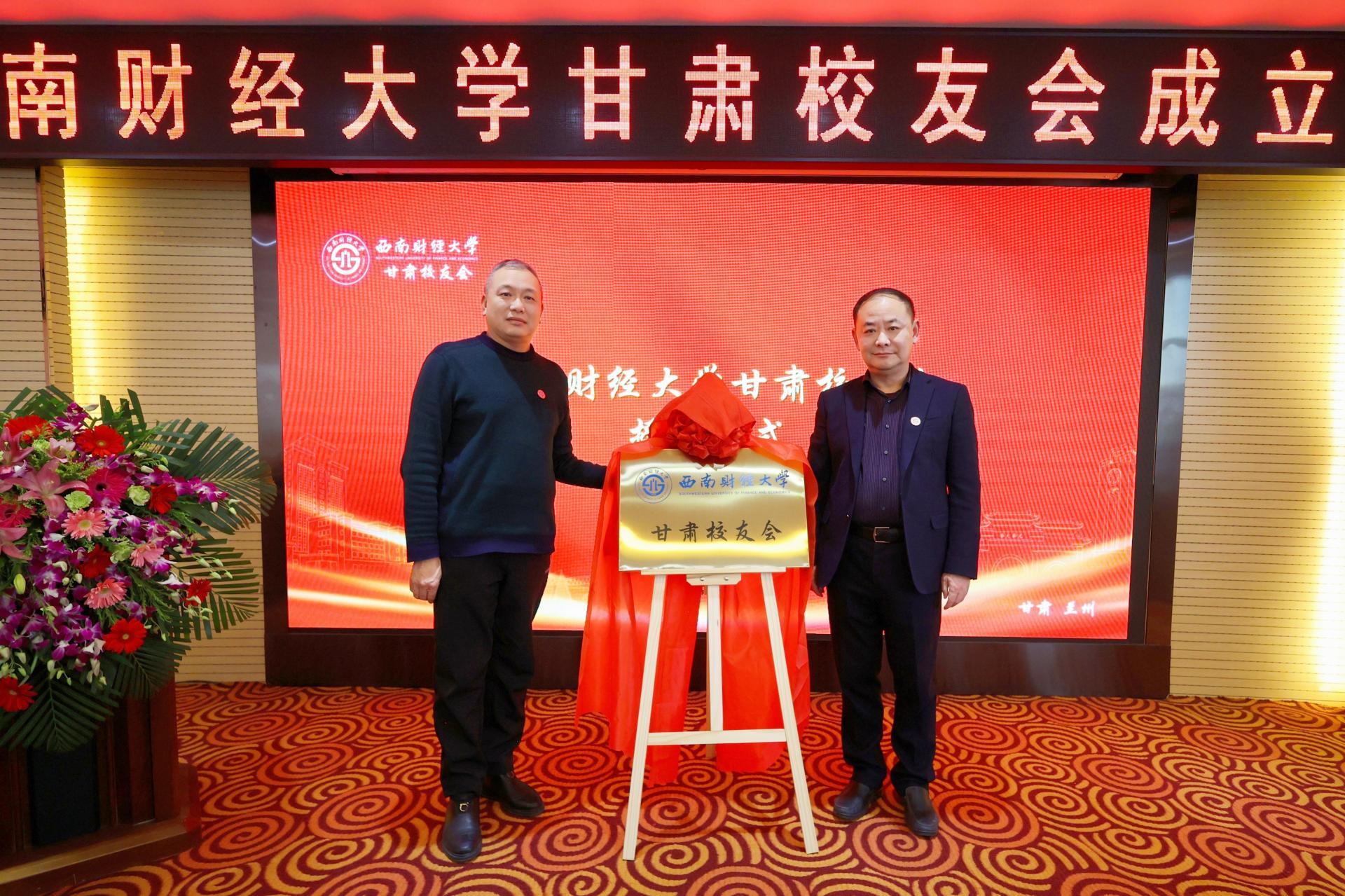會上宣讀了甘肅校友會成立批復,舉行了揭牌(授旗)儀式,并為甘肅校友會第一屆理事會成員頒發聘書。