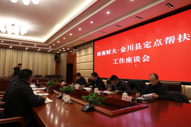 在金川縣召開的座談會上,金川縣副縣長盧永波介紹了2019年脫貧攻堅、鄉村振興等工作開展情況。彭龍首先轉達了趙德武書記、卓志校長對金川人民的親切慰問和新年問候。他指出,要深入貫徹落實習近平總書記扶貧開發戰略思想和對四川脫貧攻堅工作重要指示精神,鞏固拓展學?!安煌跣?、牢記使命”主題教育成果,堅持摘帽不摘責任、摘帽不摘政策、摘帽不摘幫扶,高質量推進各項對口幫扶工作,為全面建成小康社會決戰決勝貢獻西財力量。金川縣委副書記、縣長朱銳代表金川縣委、縣政府對我校的定點幫扶表示感謝。他表示,要再鼓干勁、再添動力,把幫扶項目一步一步推進好、一件一件落實好、一項一項完成好,全力以赴如期打贏脫貧攻堅戰。