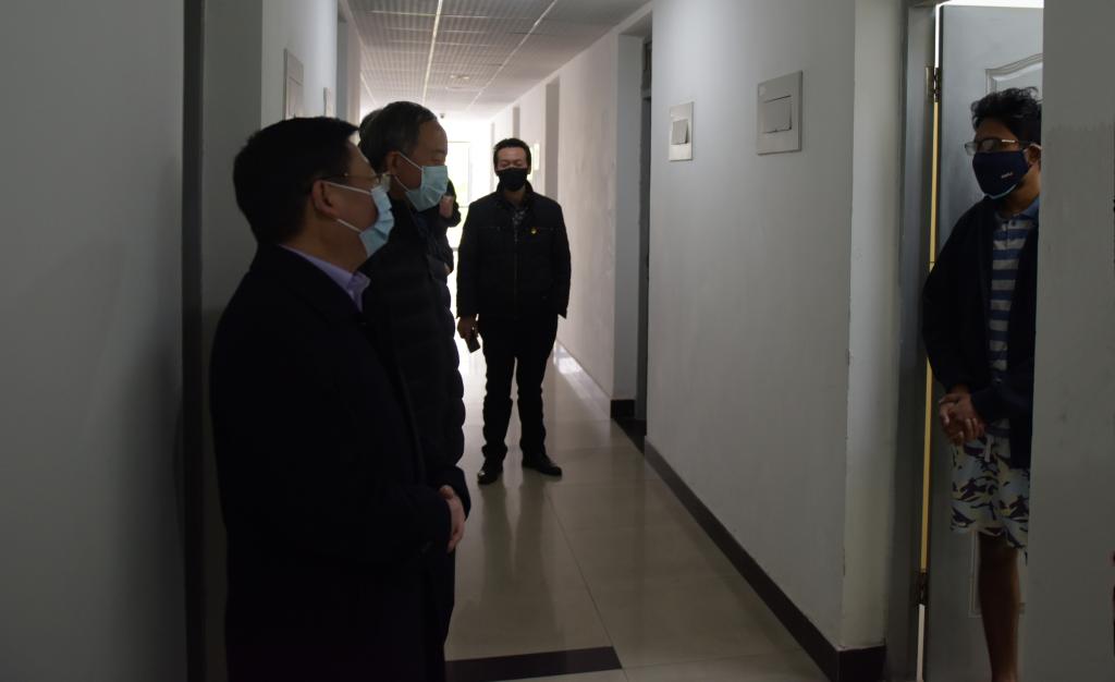 1月31日,學校疫情防控工作領導小組組長、黨委書記趙德武和校長、黨委副書記卓志,到柳林校區看望慰問在學校疫情防控一線的黨員干部、工作人員和留校學生。