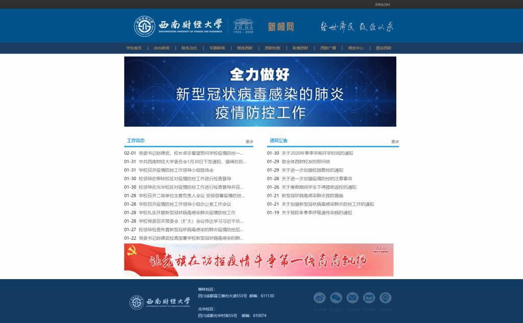 新型冠狀病毒感染的肺炎疫情發(fā)生以來,習(xí)近平總書記始終高度重視,多次召開會(huì)議、多次聽取匯報(bào)、作出重要指示,為全面做好疫情防控工作指明了方向,堅(jiān)定了信心。西南財(cái)經(jīng)大學(xué)黨委始終高度重視疫情防控工作,嚴(yán)格按照中央和教育部黨組、四川省委省政府部署要求,堅(jiān)持統(tǒng)一領(lǐng)導(dǎo)、靠前指揮、迅速應(yīng)對,在疫情防控斗爭中充分發(fā)揮全校各級黨組織戰(zhàn)斗堡壘作用和廣大黨員先鋒模范作用,帶領(lǐng)全校沉著冷靜、全力以赴、精準(zhǔn)施策、嚴(yán)密防控,科學(xué)有序推進(jìn)疫情防控各項(xiàng)舉措,讓黨旗在校園防控疫情斗爭第一線高高飄揚(yáng),全力打好疫情防控阻擊戰(zhàn)。