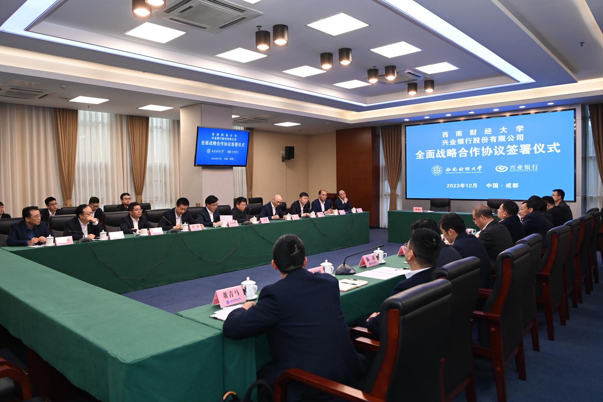 呂家進對西南財大長期以來的關心支持表示衷心感謝。他詳細介紹了興業(yè)銀行近年來的發(fā)展情況及顯著成效,回顧了自己作為西財學子的在校時光。他表示,此次全面戰(zhàn)略合作協(xié)議簽署將開啟雙方合作嶄新篇章。希望通過此次簽約,雙方在聯(lián)合科學研究、推進科技項目、聯(lián)合培養(yǎng)人才等方面開展務實合作,真正把各自的資源優(yōu)勢、創(chuàng)新優(yōu)勢轉化為合作優(yōu)勢、發(fā)展優(yōu)勢,共同打造校銀合作品牌。