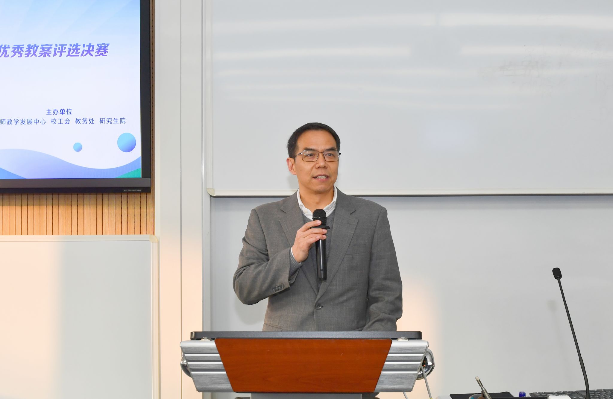 兩項(xiàng)比賽自2022年10月上旬啟動,經(jīng)過各教學(xué)單位的預(yù)賽選拔和推薦,共有來自20個(gè)教學(xué)單位的63位教師進(jìn)入校級評選。復(fù)賽環(huán)節(jié)由十多所高校的25位校外專家對參賽教師的教學(xué)設(shè)計(jì)、課件制作、授課視頻、教學(xué)資源、教學(xué)反思等進(jìn)行嚴(yán)格評審,最后評選出20位教師分別進(jìn)入兩項(xiàng)比賽的決賽。決賽環(huán)節(jié),學(xué)校邀請了來自吉林大學(xué)、西安交通大學(xué)、四川大學(xué)、電子科技大學(xué)、西南交通大學(xué)等14位校外專家共同擔(dān)任評委,專家們對我校教學(xué)競賽的組織水平和參賽教師的扎實(shí)功底給予了充分肯定。