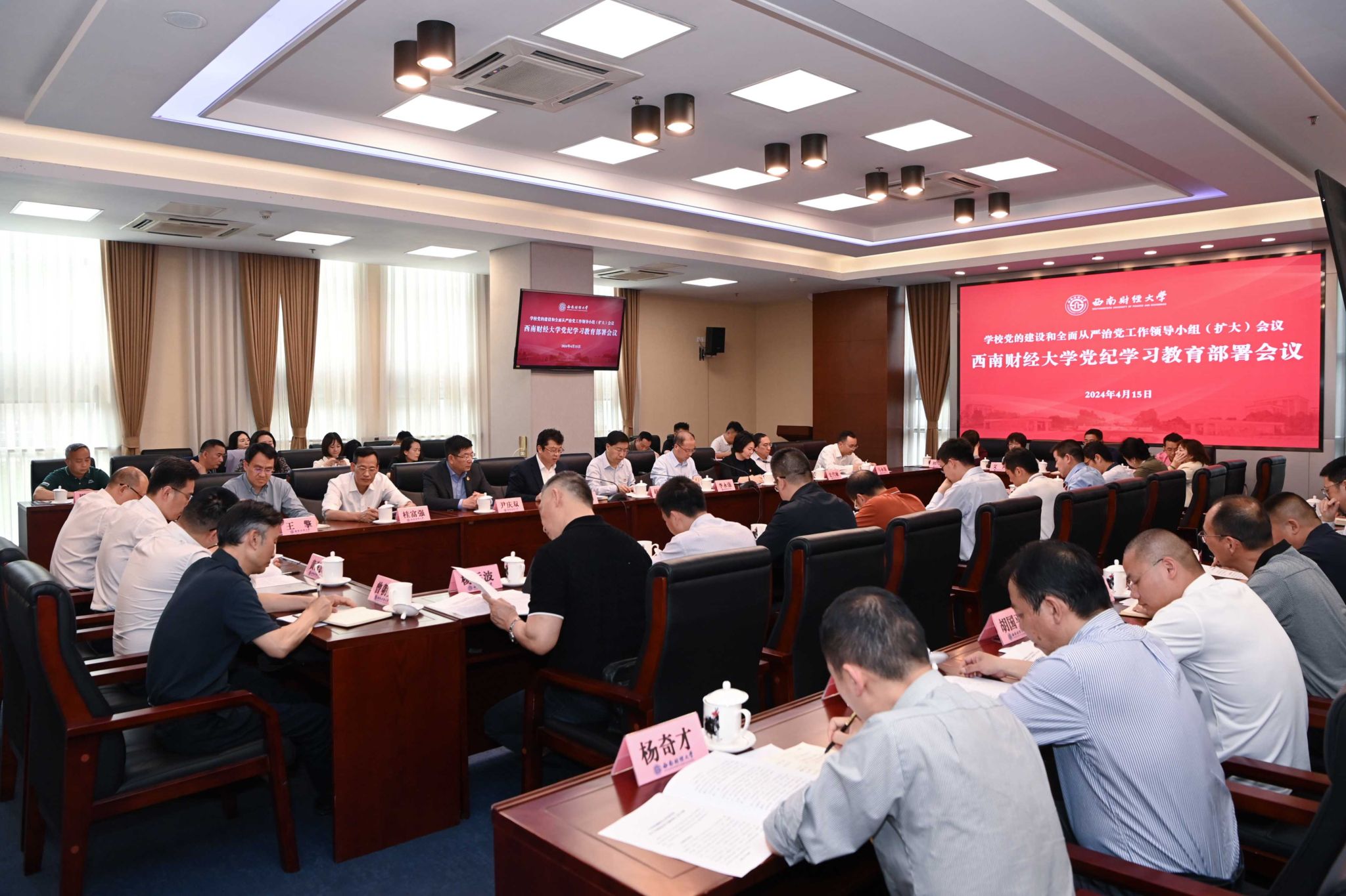 會前,學校召開黨委常委會會議,深入學習貫徹習近平總書記關于黨紀學習教育的重要講話和重要指示批示精神,研究部署學校黨紀學習教育工作,審議通過《中共西南財經大學委員會關于開展黨紀學習教育的工作方案》。