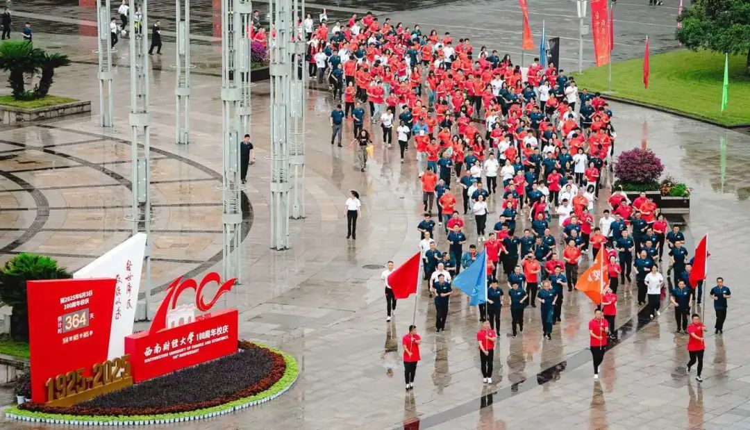 儀式前,學校校領導、中層干部代表、離退休老同志代表、師生代表、校友代表等分別在光華柳林兩校區,伴著清晨微雨、循著西財足跡,在熟悉的校園道路上向前奔跑,一起重溫西財99載歲月春秋的恢弘歷程,在回顧、致敬和展望中,共同奏響喜迎百年的華麗樂章。