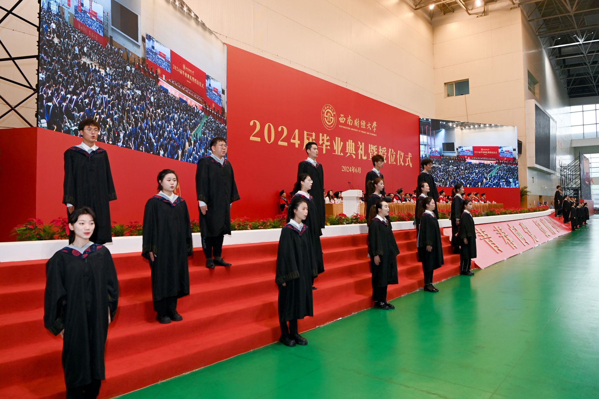 典禮結(jié)束后,校領(lǐng)導(dǎo)為畢業(yè)生逐一撥穗授位并合影留念。西南財(cái)經(jīng)大學(xué)2024屆畢業(yè)生將堅(jiān)定理想信念、胸懷“國(guó)之大者”、傳承西財(cái)精神、勇?lián)鷷r(shí)代重任,把青春奮斗融入到黨和人民的事業(yè)之中,融入到強(qiáng)國(guó)建設(shè)、民族復(fù)興的時(shí)代洪流之中,踔厲奮發(fā)、勇毅前行,以西財(cái)人的使命意識(shí)和實(shí)干篤行,投身偉大時(shí)代,書寫精彩人生。