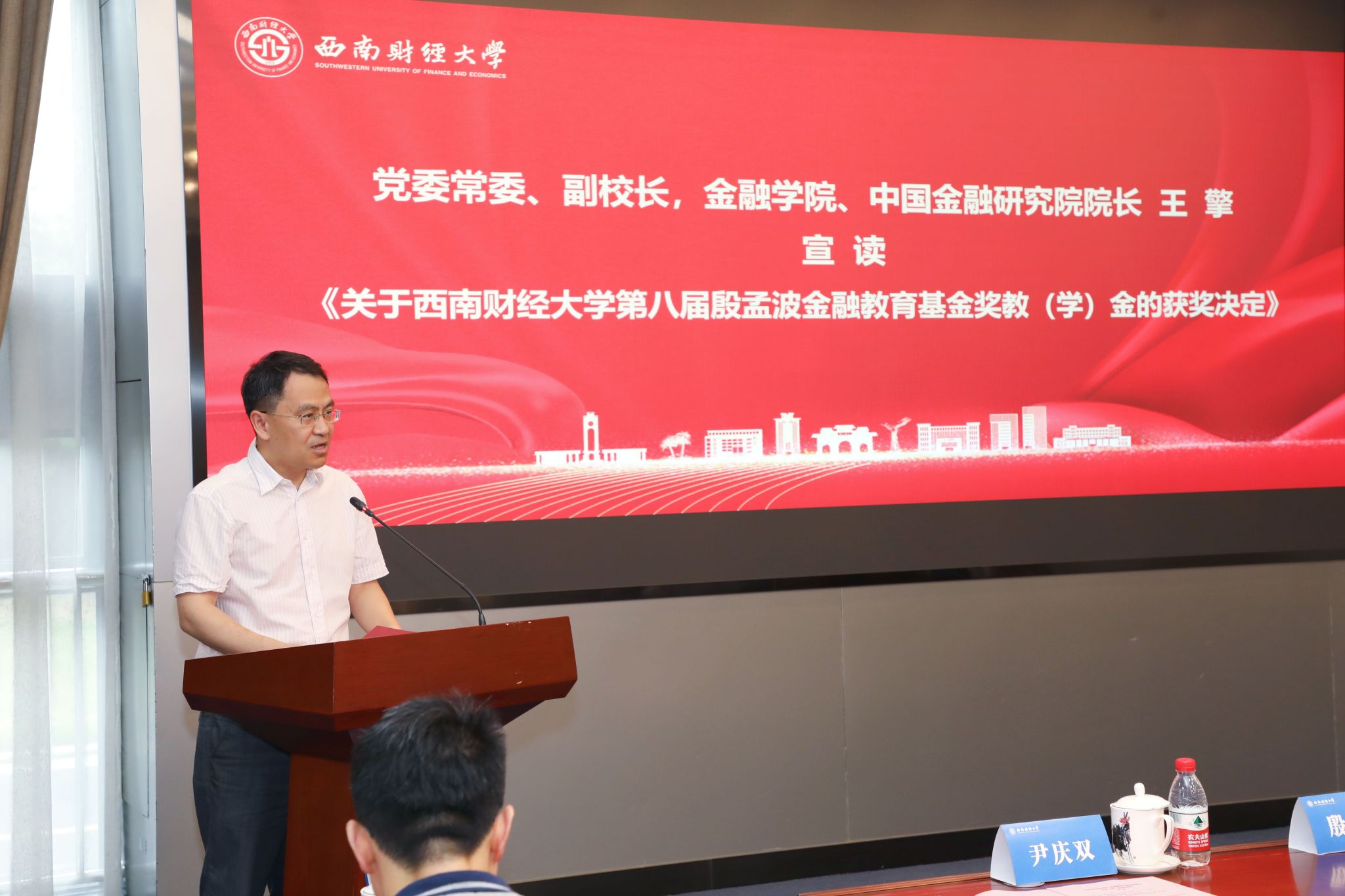 6月19日上午,西南財經(jīng)大學(xué)第八屆殷孟波金融教育基金獎教(學(xué))金頒獎典禮在柳林校區(qū)舉行。殷孟波教授,黨委原常委、原副校長、殷孟波金融教育基金獎教(學(xué))金評審委員會主席尹慶雙,黨委常委、副校長王擎,獲獎代表,學(xué)院(研究院)負(fù)責(zé)人、師生代表參加典禮。