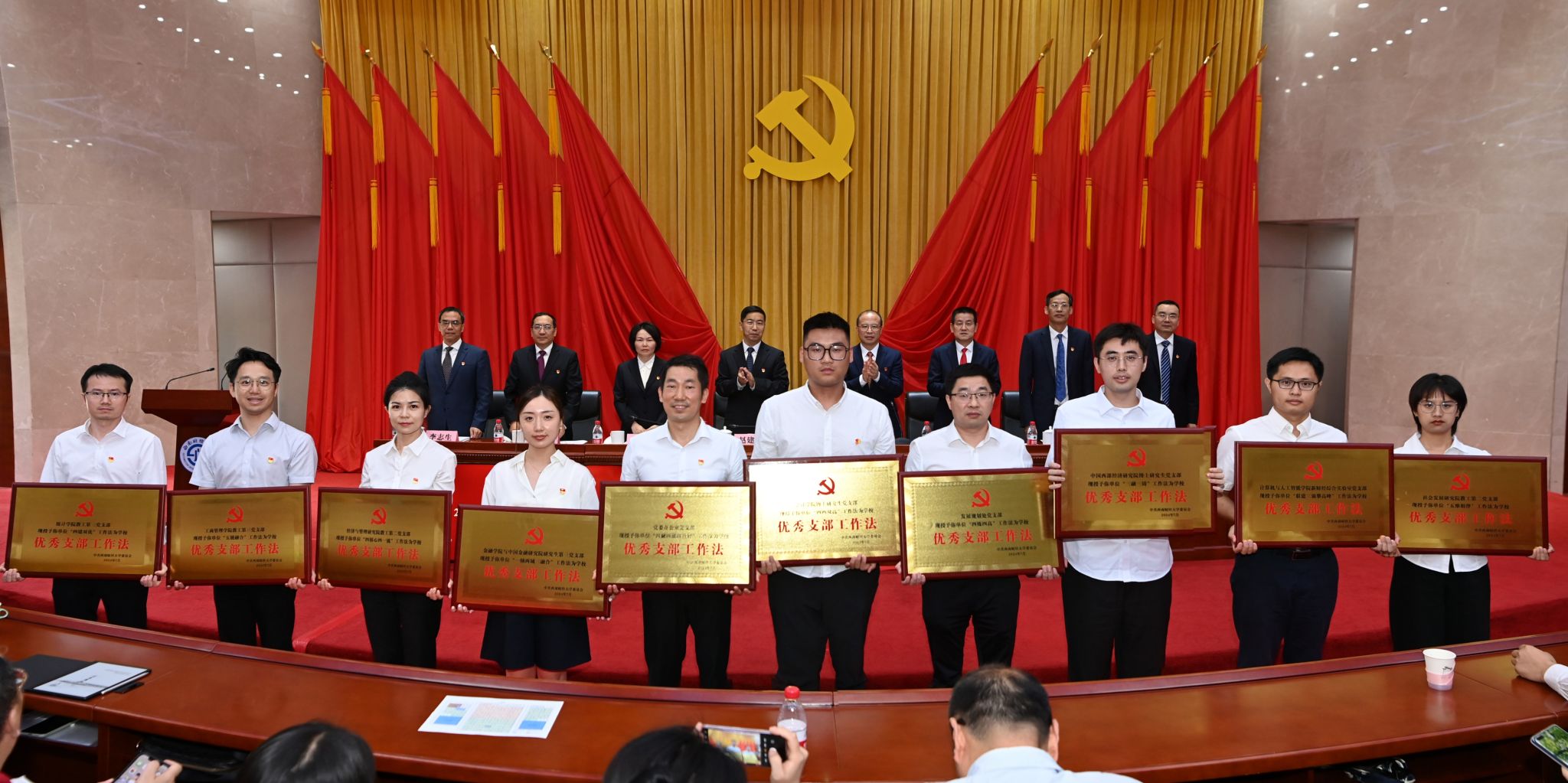 會上發布第三批“黨建工作品牌”和“優秀支部工作法”。趙建軍為“黨建工作品牌”創建單位授牌,校領導為“優秀支部工作法”創建單位授牌。