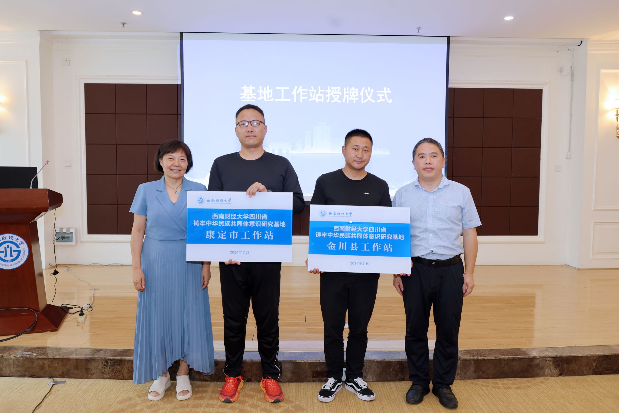 學(xué)校研究基地首席專家邊慧敏教授介紹了研究基地建設(shè)方案。劉向鴻、張靖、李永強(qiáng)、謝紅共同為西南財(cái)經(jīng)大學(xué)四川省鑄牢中華民族共同體意識(shí)研究基地揭牌。謝紅、邊慧敏頒發(fā)研究基地學(xué)術(shù)委員會(huì)專家聘書。邊慧敏和基地主任鄧湘樹(shù)向研究基地首批工作站授牌。
