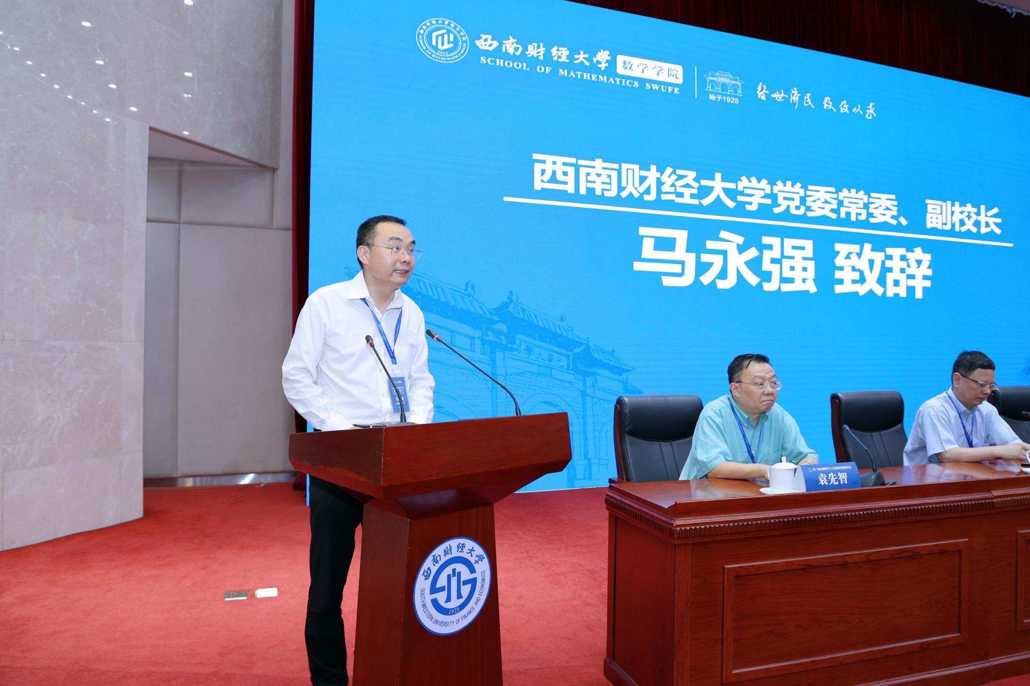 馬永強代表學校向各位專家學者表示熱烈歡迎,介紹了學校歷史沿革、辦學特色和數學學院發展概況及建設成果。他表示,舉辦本次學術論壇旨在貫徹落實學校學科建設大會精神,推動金融數學、金融工程和精算保險等優勢特色學科快速發展。他希望本次研討會能充分發揮智慧分享、思想交流的平臺作用,有力推動金融數學、金融工程和精算保險進一步創新發展。